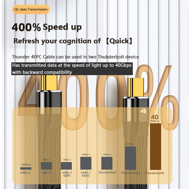 - Thunder 4FPC Cable can be used in two Thunderbolt devices. Has transmitted data at the speed of light up to 40Gbps with backward compatibility