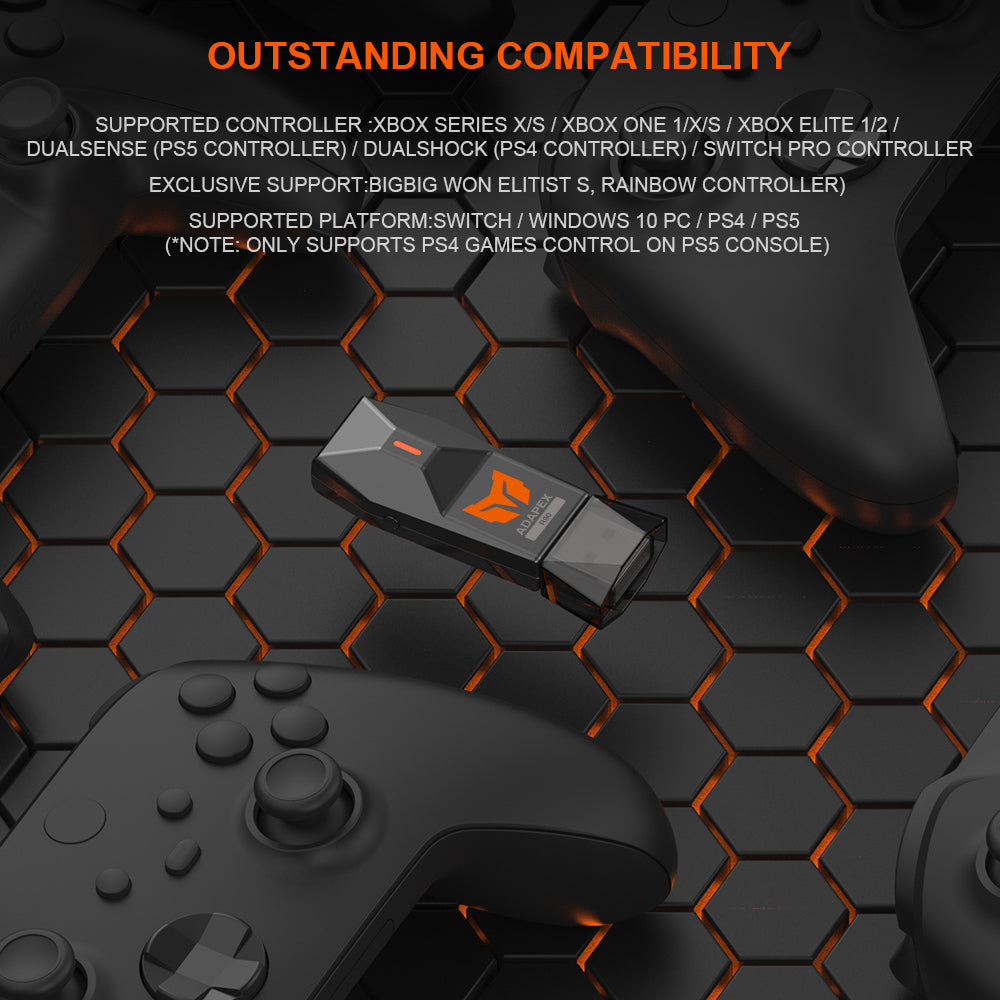 There are more controllers supported than wireless converters: all Support for XBOX controllers, including for XBOX2020, and some well-known brand controllers (models that have been tested and supported: for Xbox Series X/S controllers/for Xbox One 1/X/S controllers/for Xbox Elite 1/2 controller, for DualSense/for DualShock/for Switch Pro controller, for BIGBIG WON: C1, C2)
