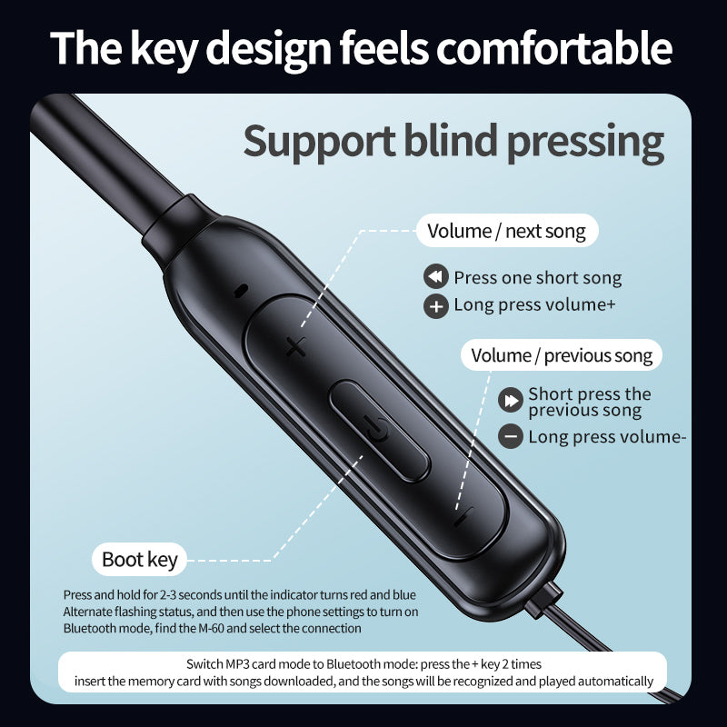 - M60 8D Surround Sound Bluetooth 5.1 Wireless Earphone Neck Hanging Headphone Support TF Card M60 8D Surround Sound Bluetooth 5.1 Wireless Earphone Neck Hanging Headphone Support TF Card