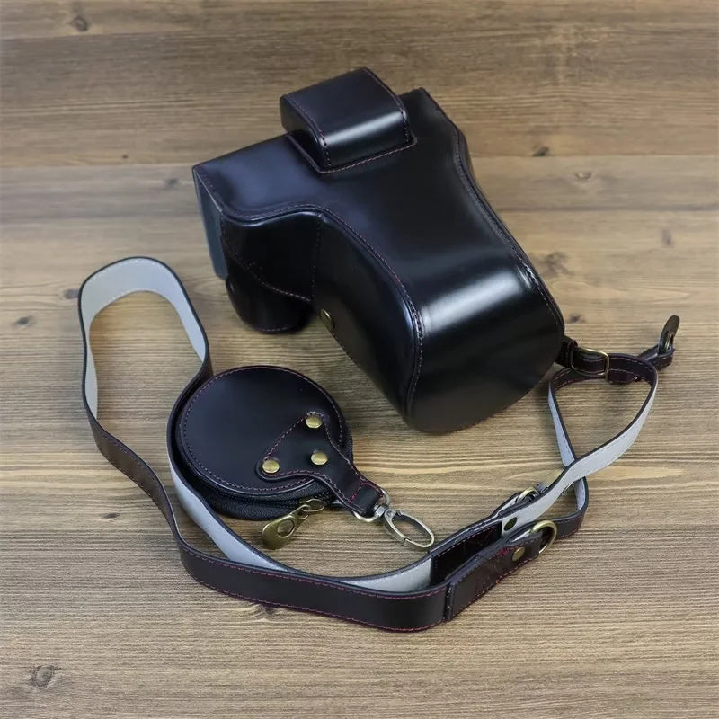 For Fuji X-T5 Battery Opening Design Detachable PU Leather Camera Bag Protective Case with Lens Pouch and Shoulder Strap