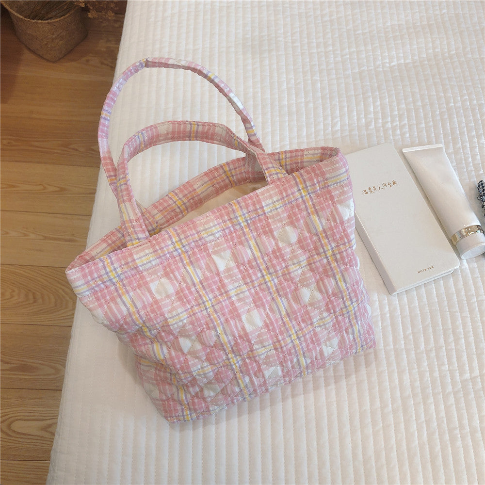 143 Grid Pattern Cosmetic Bag Soft Makeup Storage Handbag Multipurpose Toiletries Organizer Pouch Travel Accessories Storage Purse