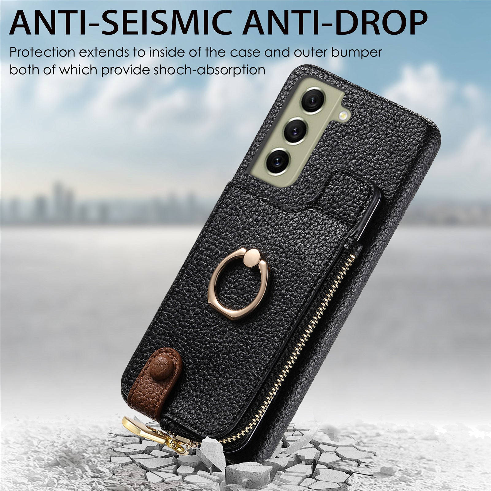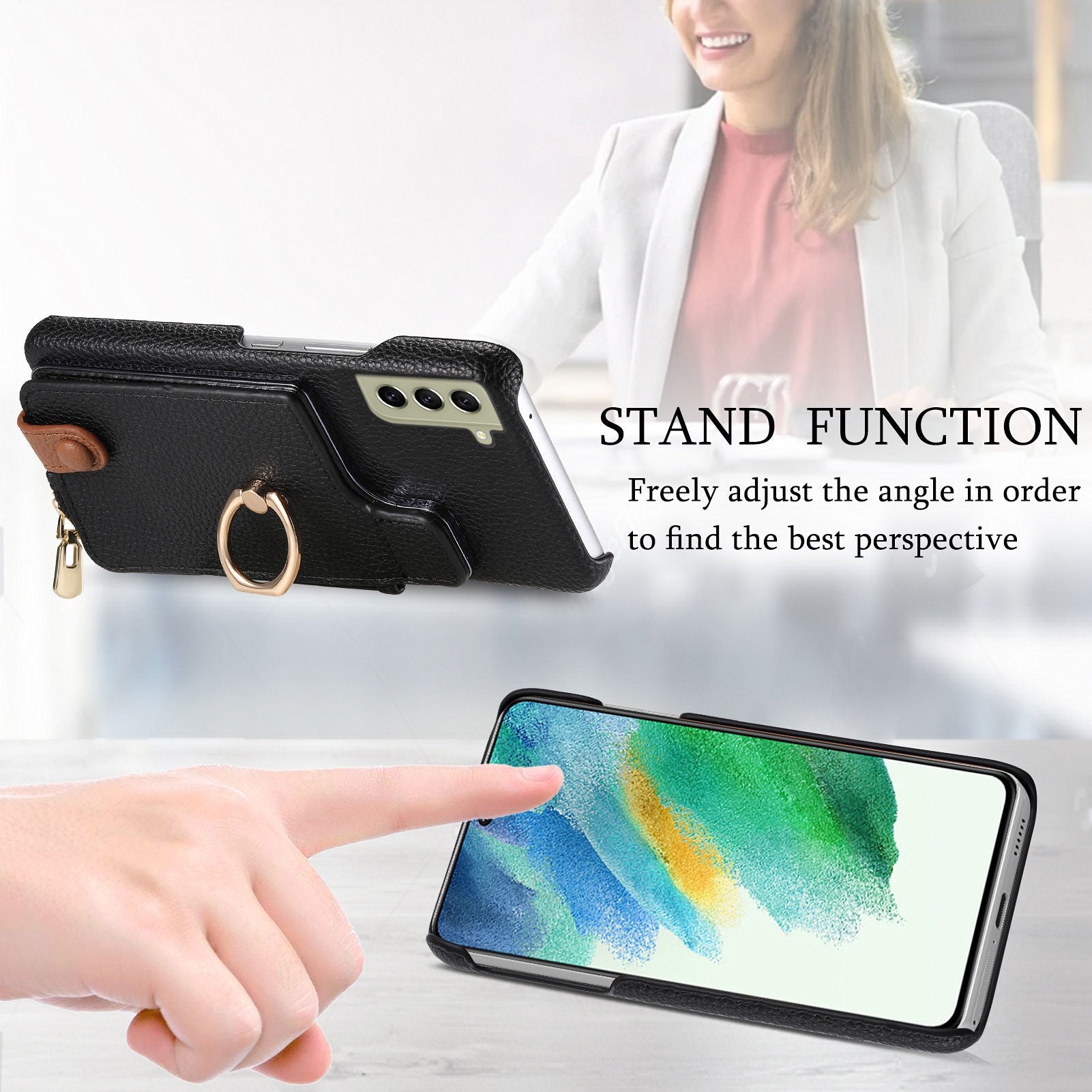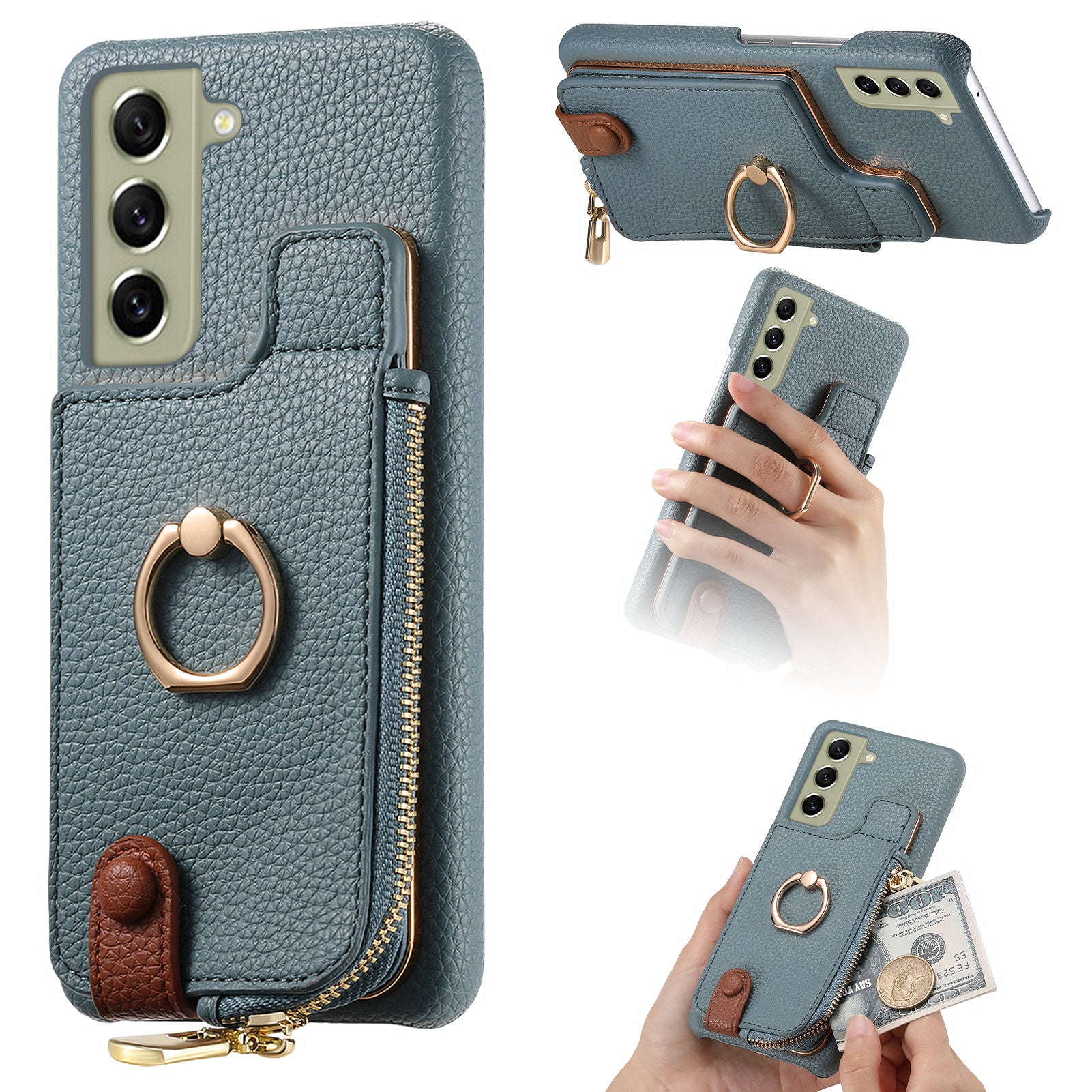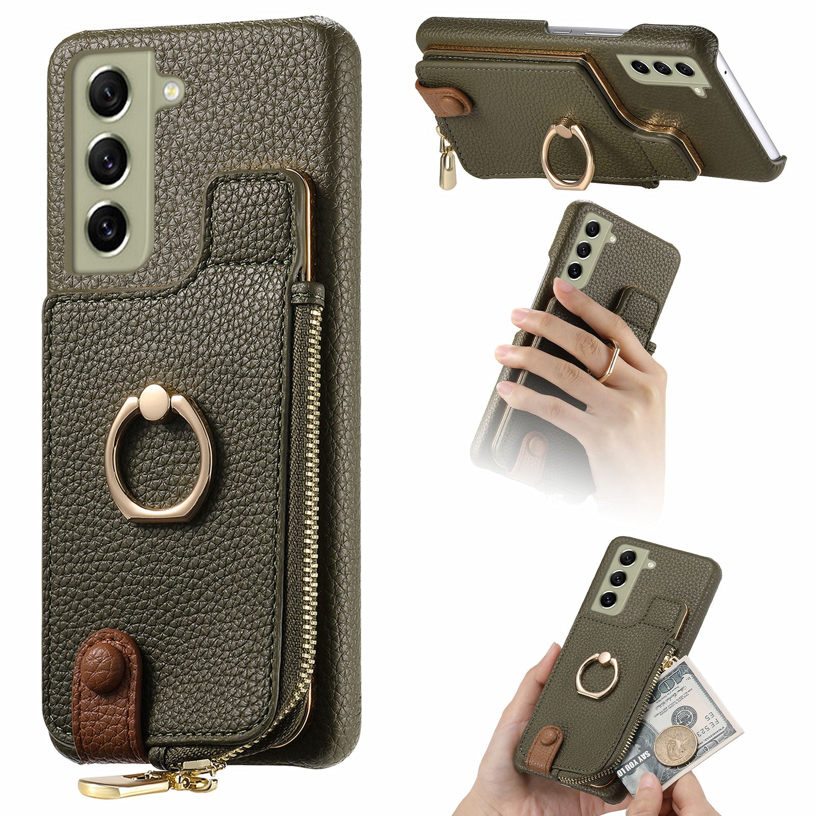 - Y3 for Samsung Galaxy S21 FE 5G Drop-proof Case Ring Kickstand Leather Phone Cover with Zipper Pocket Y3 for Samsung Galaxy S21 FE 5G Drop-proof Case Ring Kickstand Leather Phone Cover with Zipper Pocket