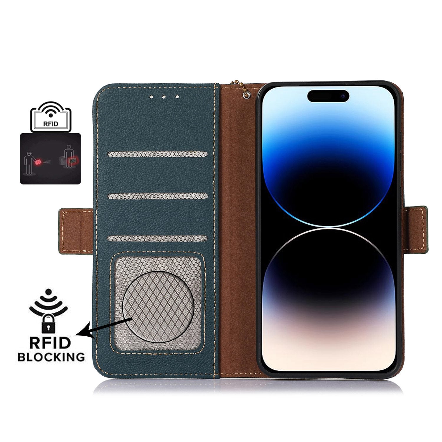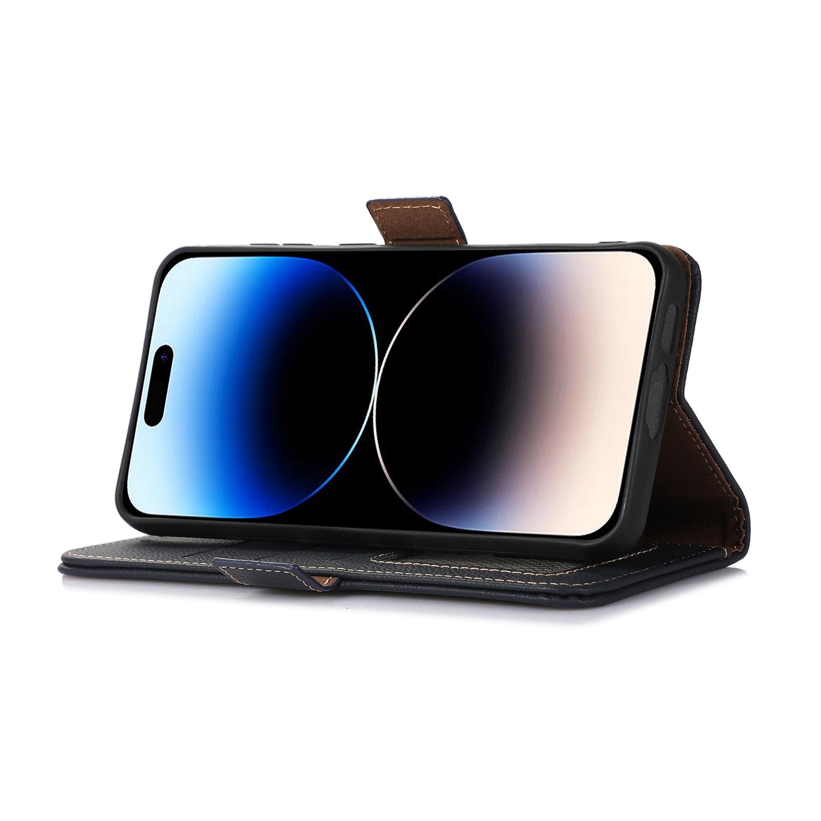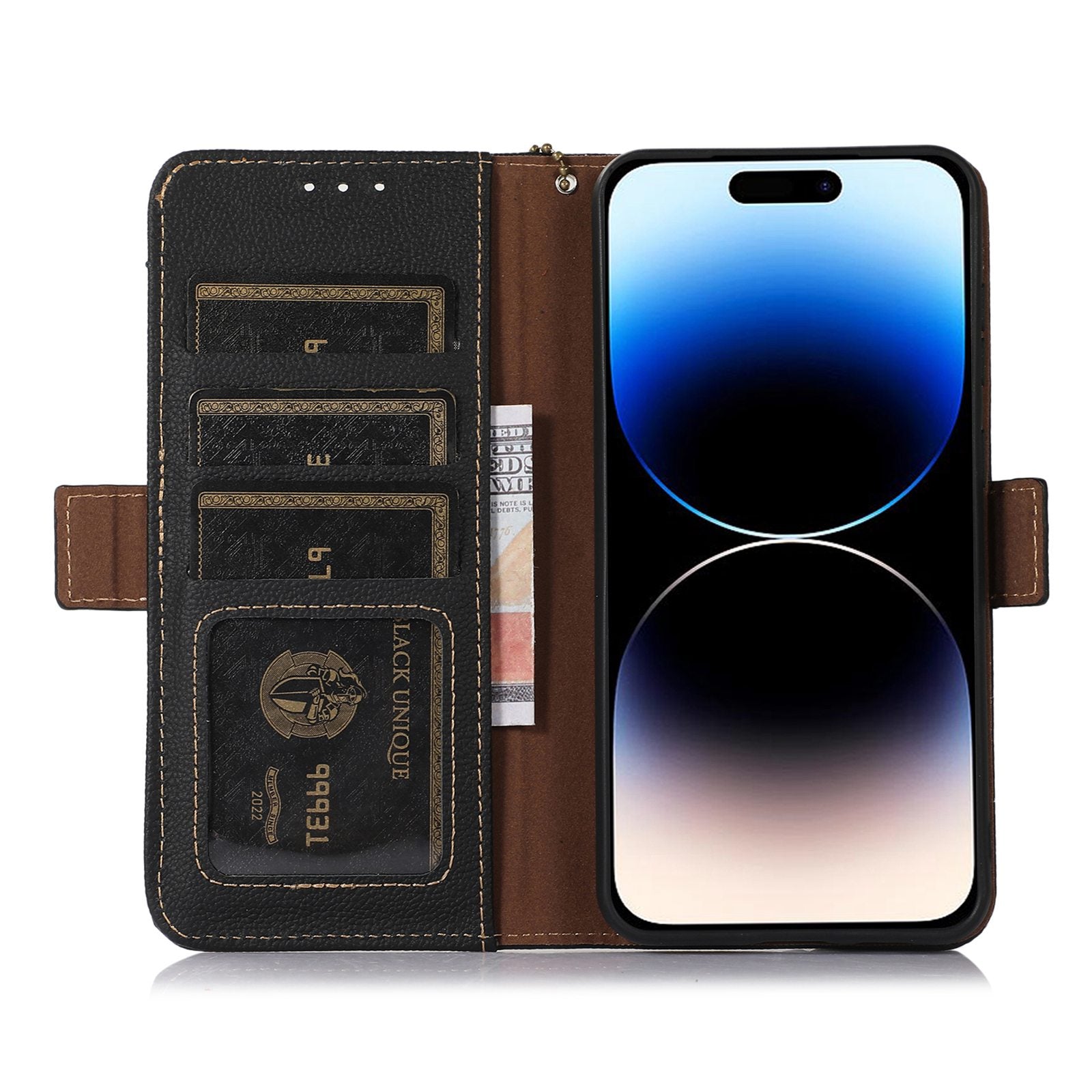 - TJ RFID Blocking Wallet Phone Case for iPhone 15 Pro Genuine Cow Leather Phone Cover with Stand TJ RFID Blocking Wallet Phone Case for iPhone 15 Pro Genuine Cow Leather Phone Cover with Stand