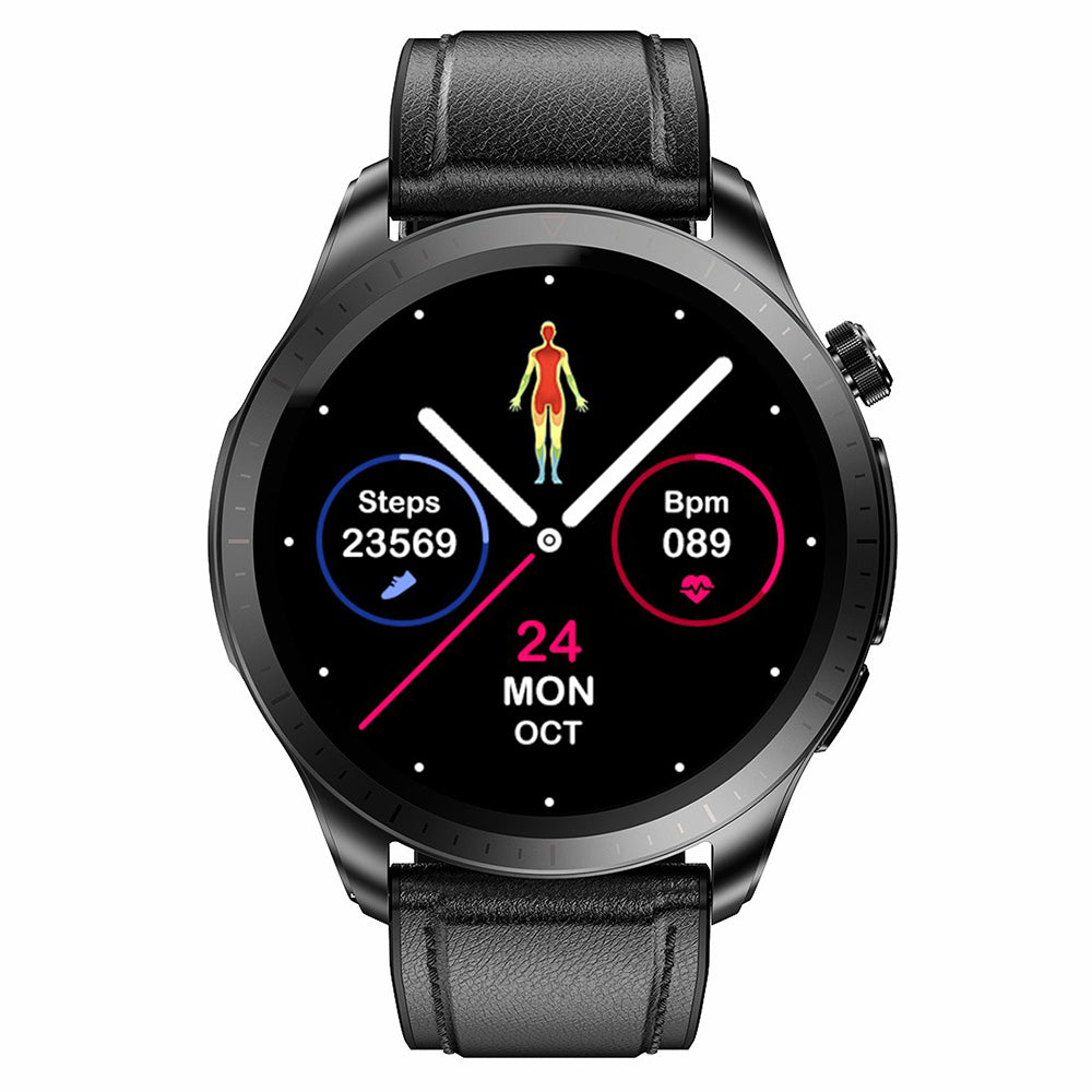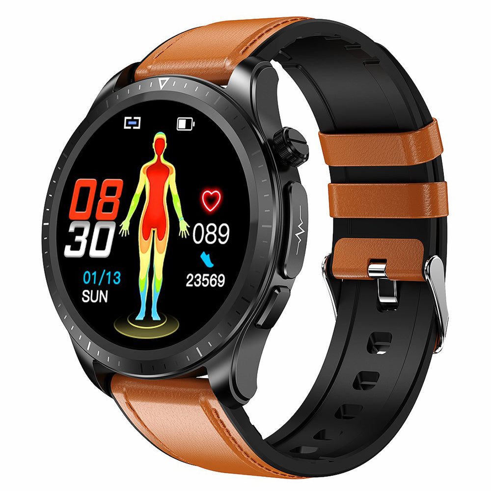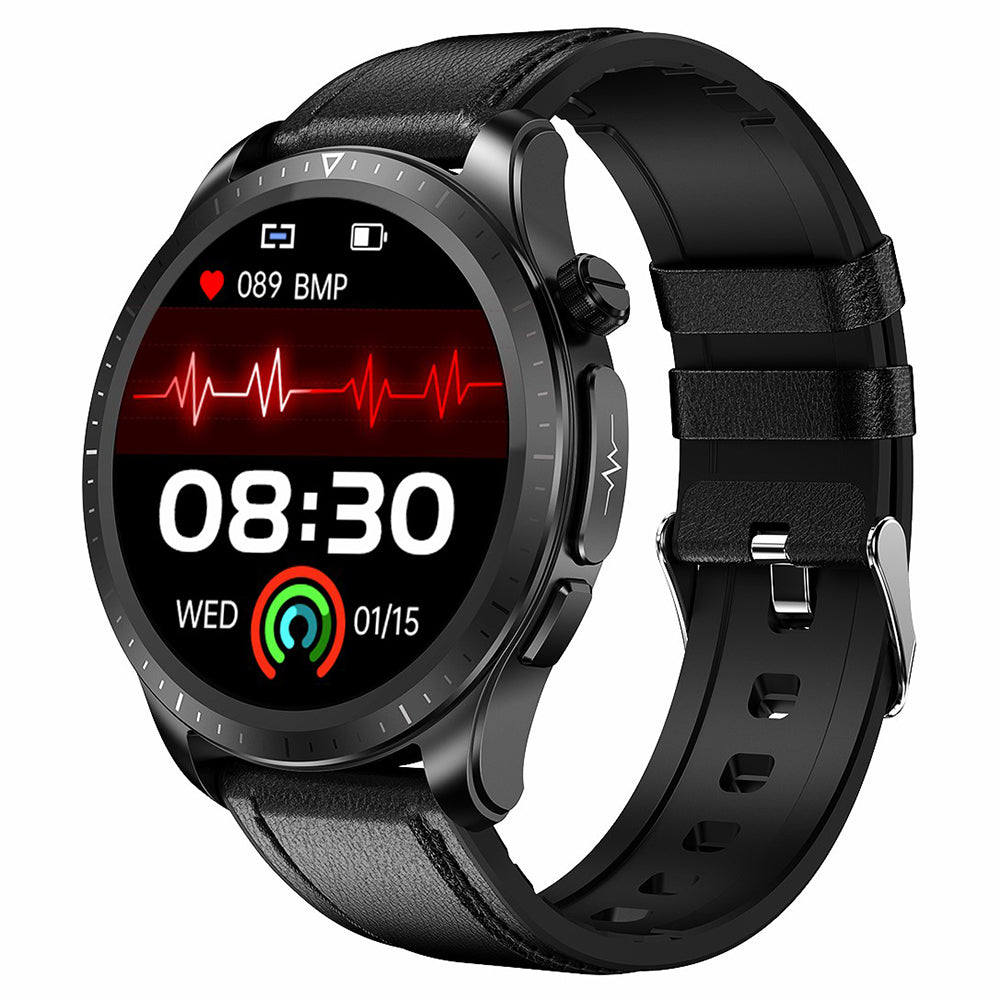 E420 1.39-inch Smart Bracelet Waterproof Fitness Watch ECG PPG Health Watch with Heart Rate Monitoring Leather Strap