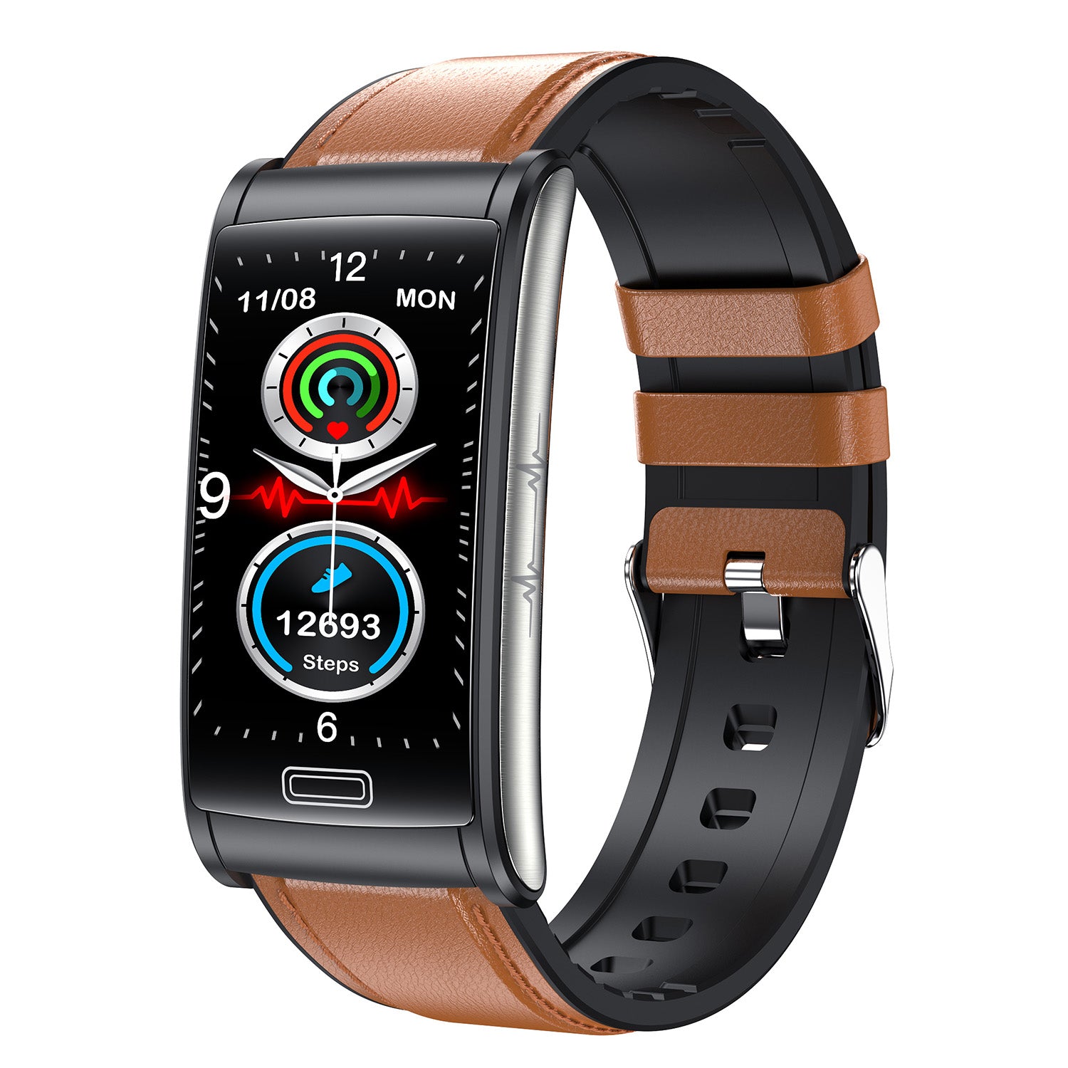- E600 1.47 HD Smart Watch ECG PPG Blood Oxygen Heart Rate Blood Pressure Monitoring Waterproof Sports Bracelet with Leather Strap Black E600 1.47 HD Smart Watch ECG PPG Blood Oxygen Heart Rate Blood Pressure Monitoring Waterproof Sports Bracelet with Leather Strap Black