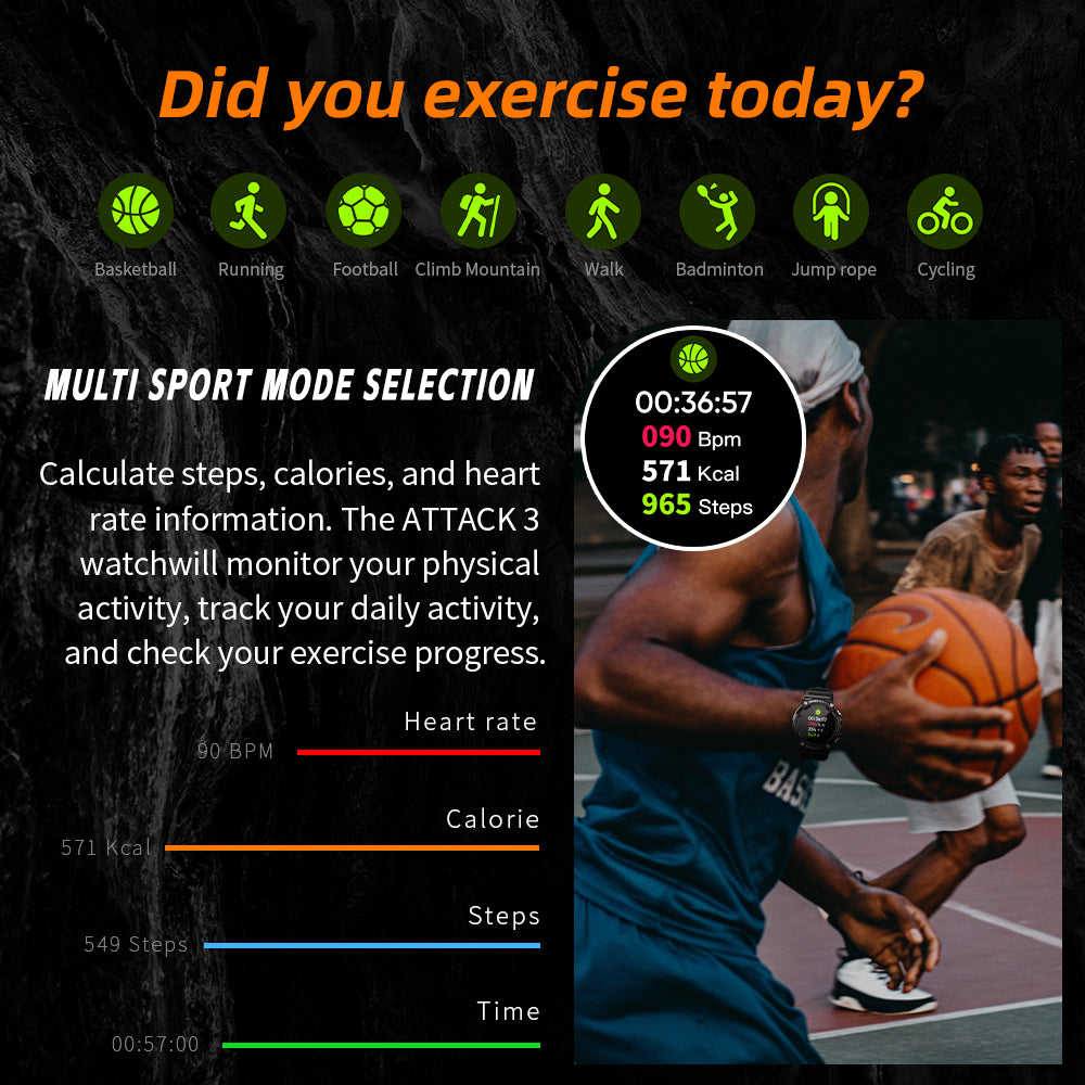 - Multi Sport Mode Selection: For you to record accurate and real-time, sports data and health data