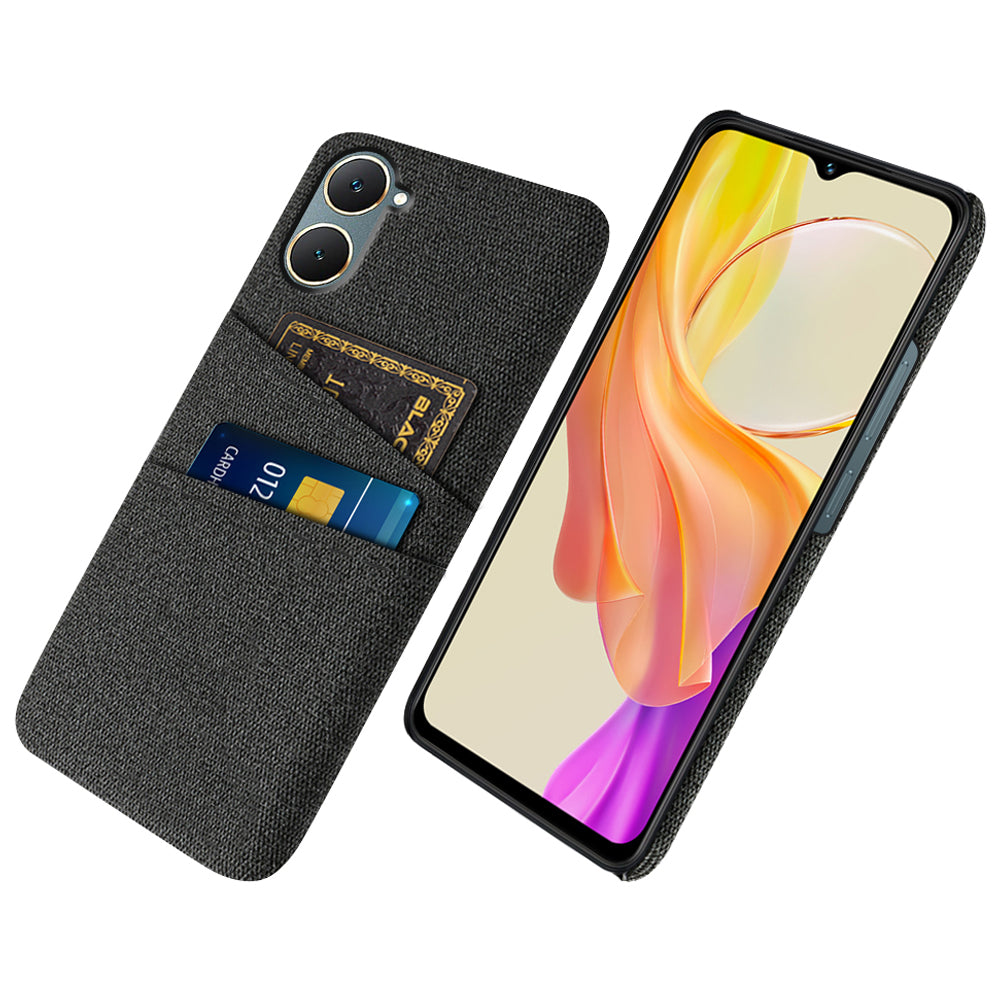 - For vivo Y03 Case Cloth+PC Dual Layer Protective Phone Cover with 2 Card Slots For vivo Y03 Case Cloth+PC Dual Layer Protective Phone Cover with 2 Card Slots
