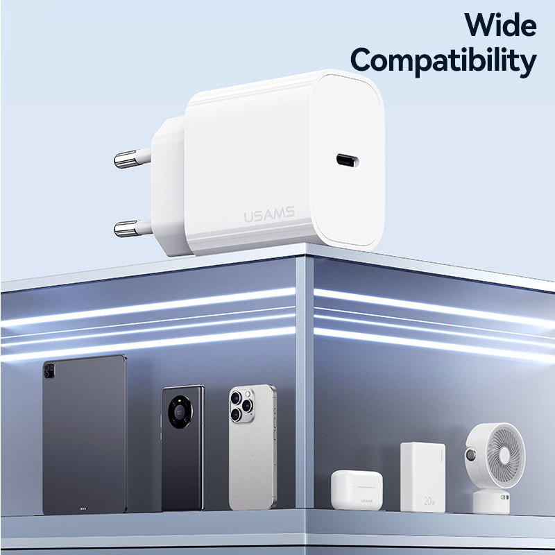 - USAMS CC226 T65 PD 20W Fast Charger Power Adapter for iPhone 8-15, EU Plug USAMS CC226 T65 PD 20W Fast Charger Power Adapter for iPhone 8-15, EU Plug