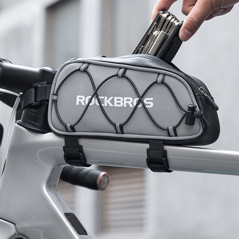 - ROCKBROS 039-1 Polyester Bicycle Tube Bag Reflective Design MTB Bike Frame Bag ROCKBROS 039-1 Polyester Bicycle Tube Bag Reflective Design MTB Bike Frame Bag