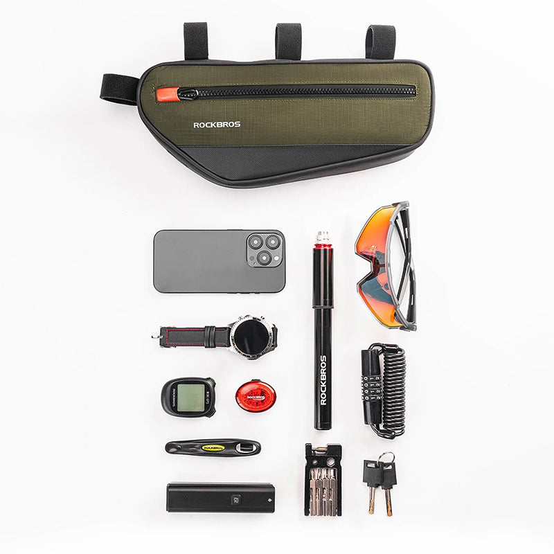 - ROCKBROS 066 1.7L Cycling Reflective Polyester+PU Triangle Bicycle Top Tube Bag ROCKBROS 066 1.7L Cycling Reflective Polyester+PU Triangle Bicycle Top Tube Bag