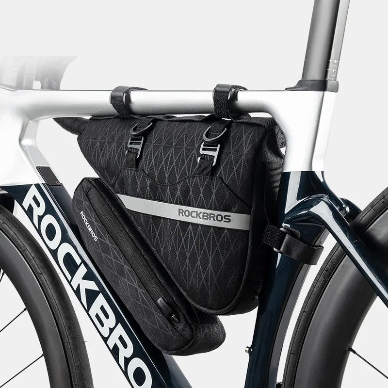 - ROCKBROS 070 2-in-1 Bicycle Front Handlebar Bag Polyester Top Tub Triangle Bag ROCKBROS 070 2-in-1 Bicycle Front Handlebar Bag Polyester Top Tub Triangle Bag