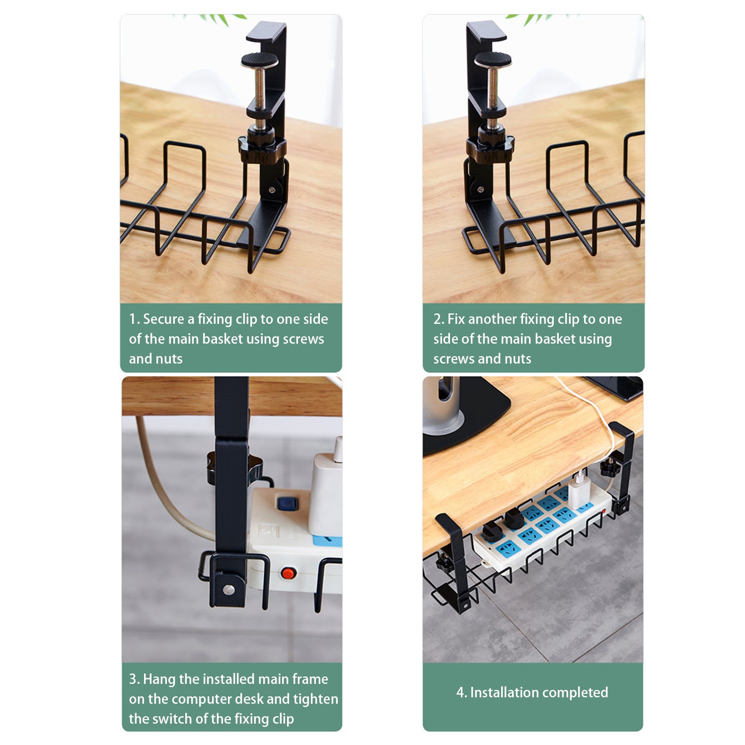 - No Drills, Just Clamps: Our under desk cable management is designed to clamp directly to desk frames, you can simply rotate the black knob by hand to clamp the cable rack tightly to your desk instead of drilling holes