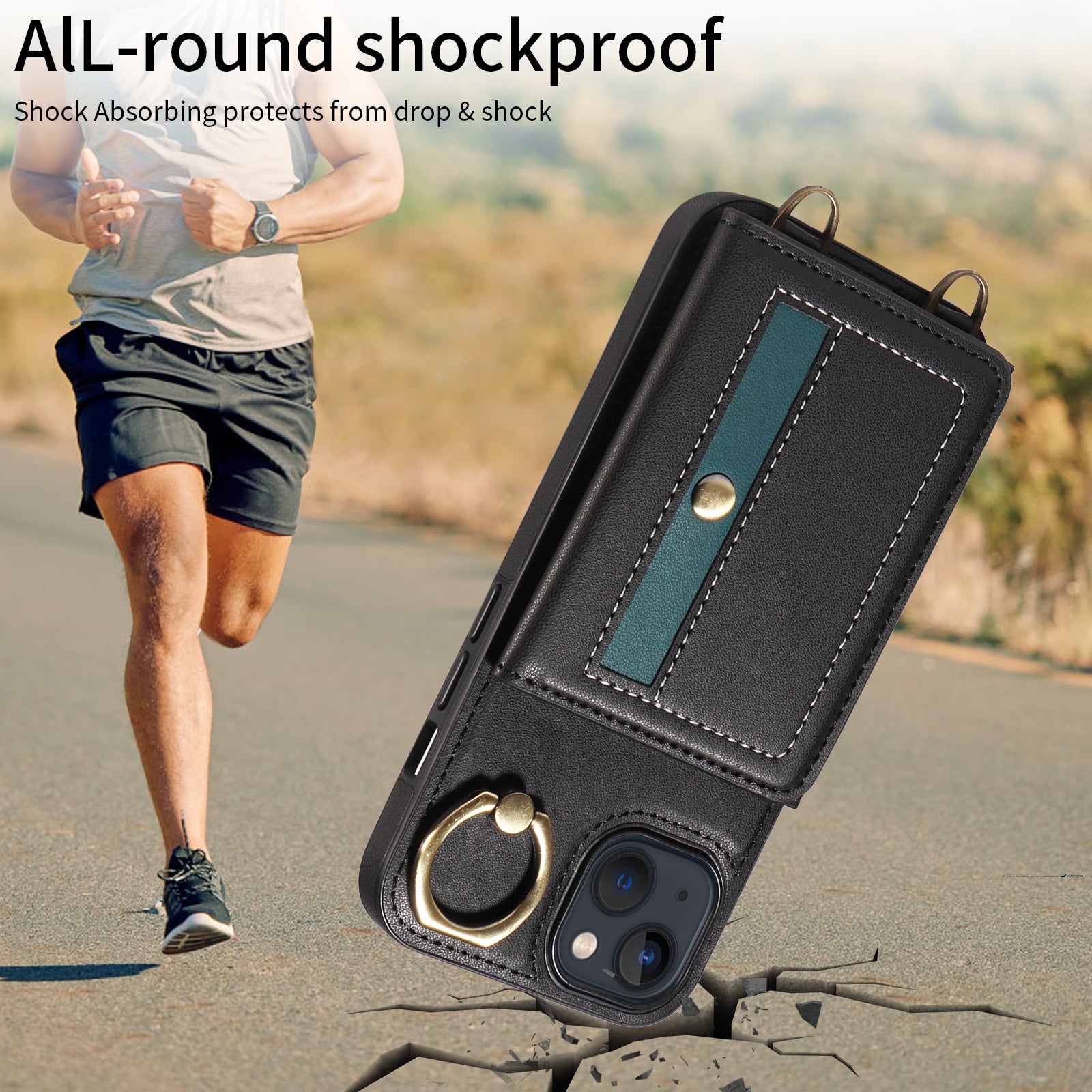 007 For iPhone 13 Case Ring Kickstand Calf Texture Leather Phone Back Cover
