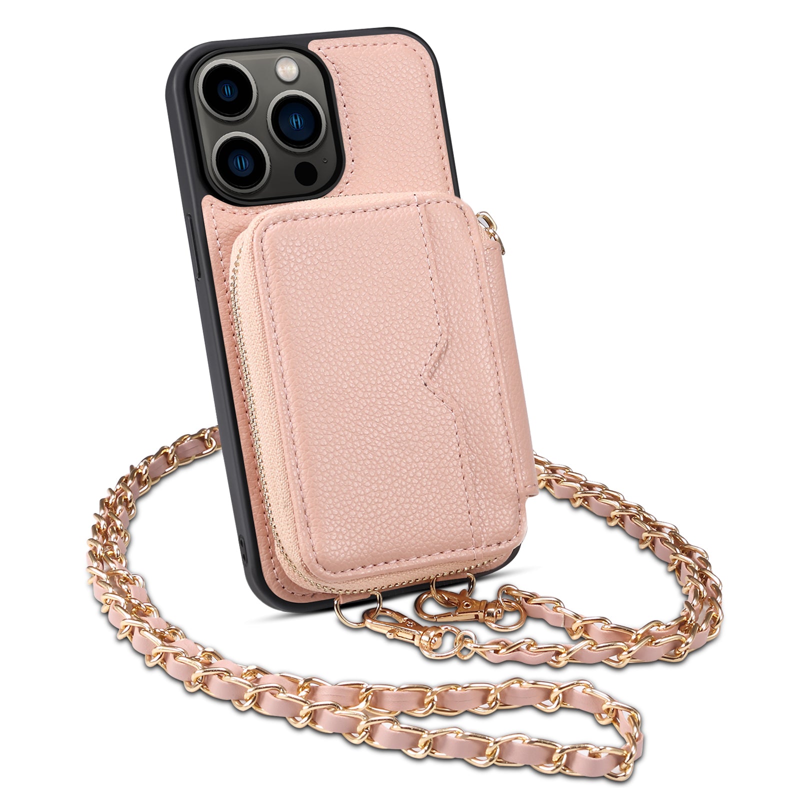 Pro iPhone 13 Pro Max držák na kartu Kryt na telefon Stojánek Peněženka z PU kůže TPU na telefon s popruhem