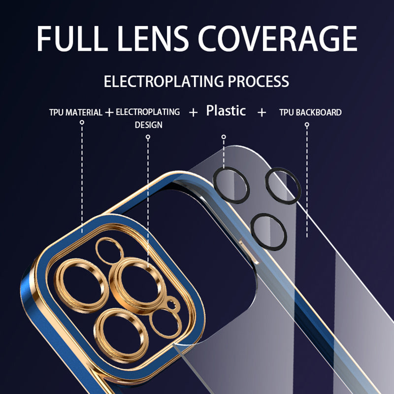 - Pro iPhone 14 Pro Max Transparentní TPU kryt Odolný proti pádu Design airbagu Galvanicky pokovený zadní kryt s plastovou fólií na čočky – modrý Pro iPhone 14 Pro Max Transparentní TPU kryt Odolný proti pádu Design airbagu Galvanicky pokovený zadní kryt s plastovou fólií na čočky – modrý
