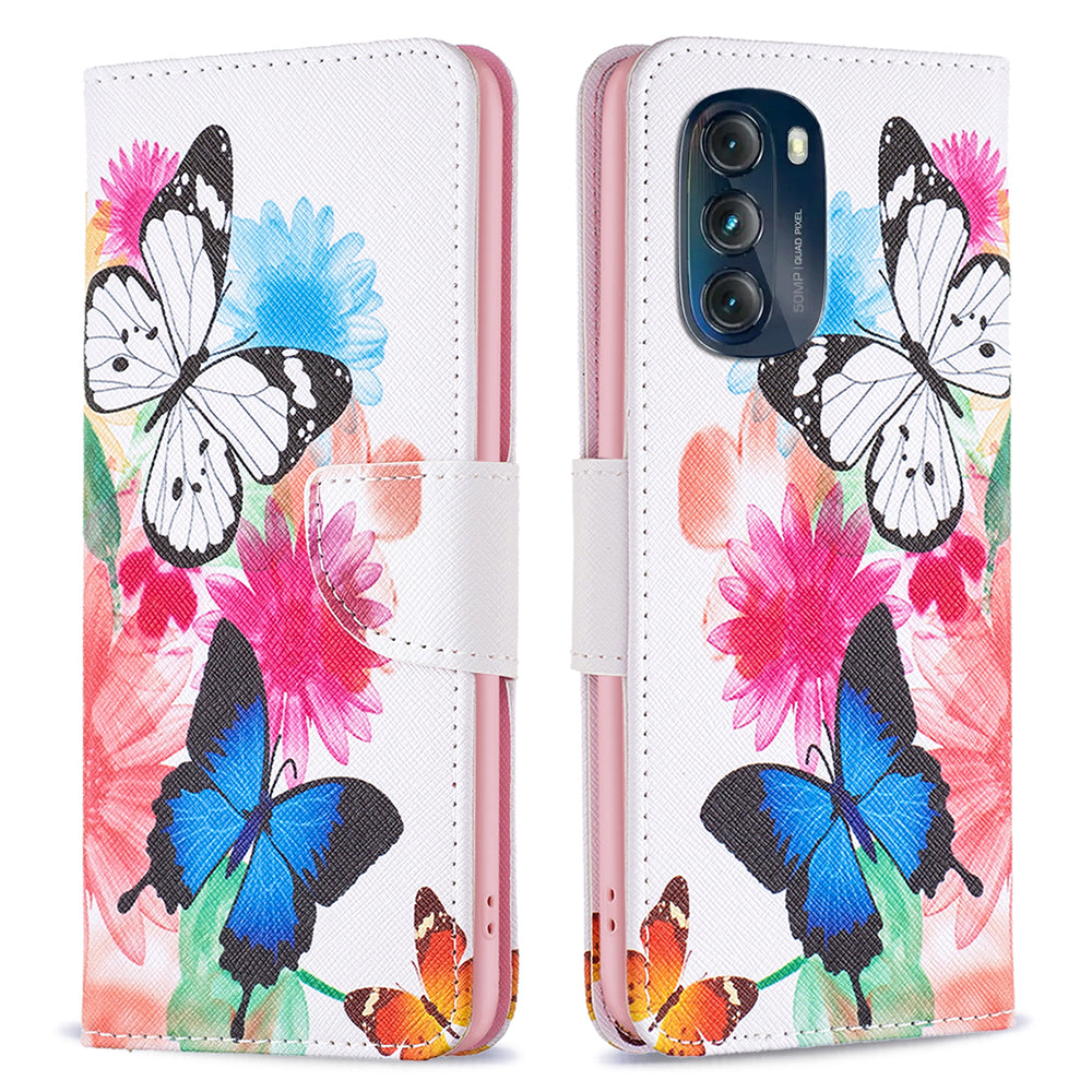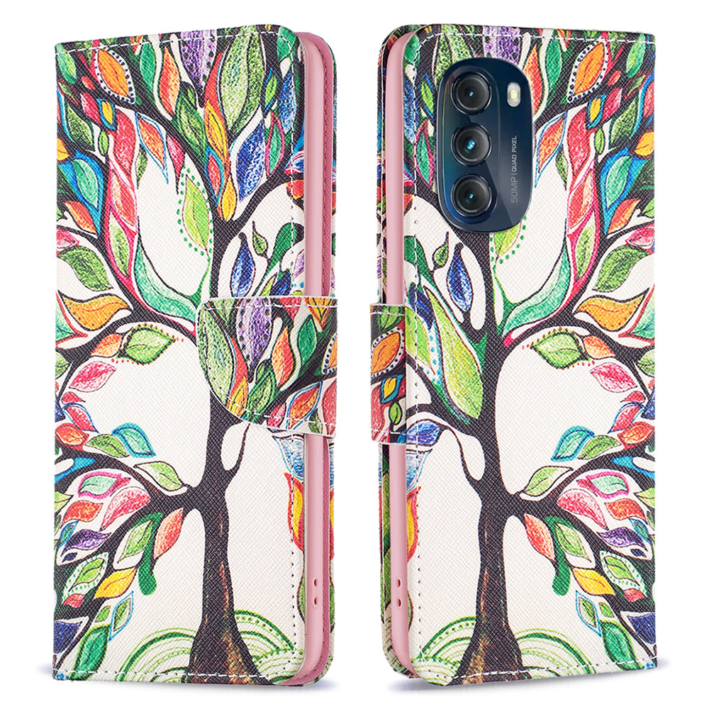 Ochranné pouzdro na telefon s ochranou proti pádu pro Motorola Moto G 5G (2023) Kožený potisk vzoru BF s potiskem vzoru Series-1 Kryt telefonu na stojánek na peněženku s potiskem