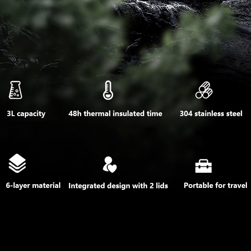 TEAHOO 3.0L Leak Proof 304 Stainless Steel Insulated Cup Water Bottle (BPA Free, No FDA)