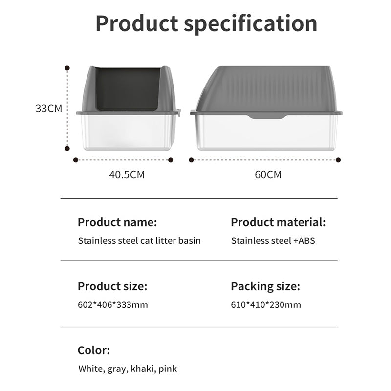 - Heighten Pet Cat Litter Box Anti-splash Stainless Steel+ABS Cat Toilet Heighten Pet Cat Litter Box Anti-splash Stainless Steel+ABS Cat Toilet