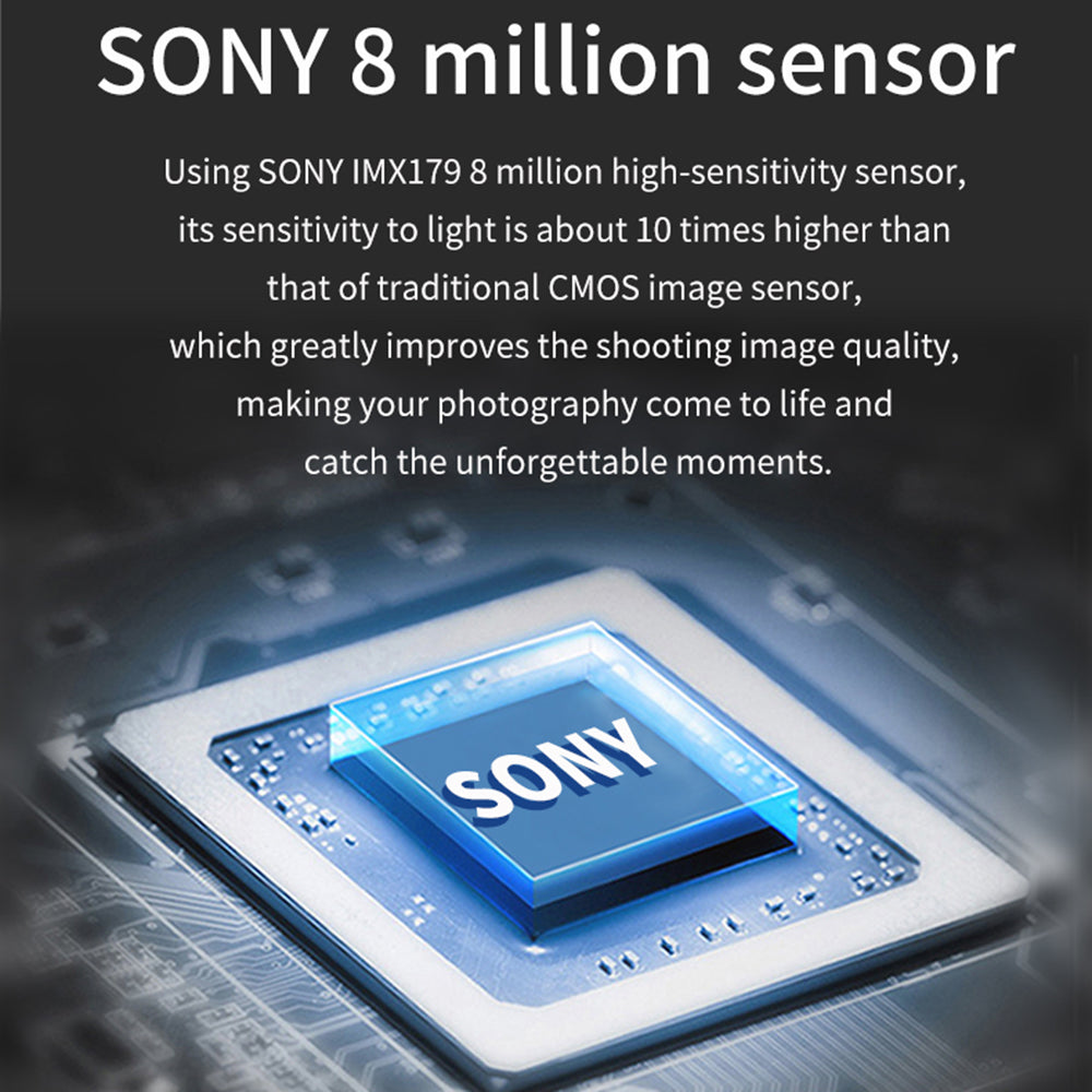 - 8 million sensor: Using for SONY IMX179 8 million high-sensitivity sensor, its sensitivity to light is about 10 times higher than that of traditional CMOS image sensor, which greatly improves the shooting image quality, making your photography come to life and catch the unforgettable moments