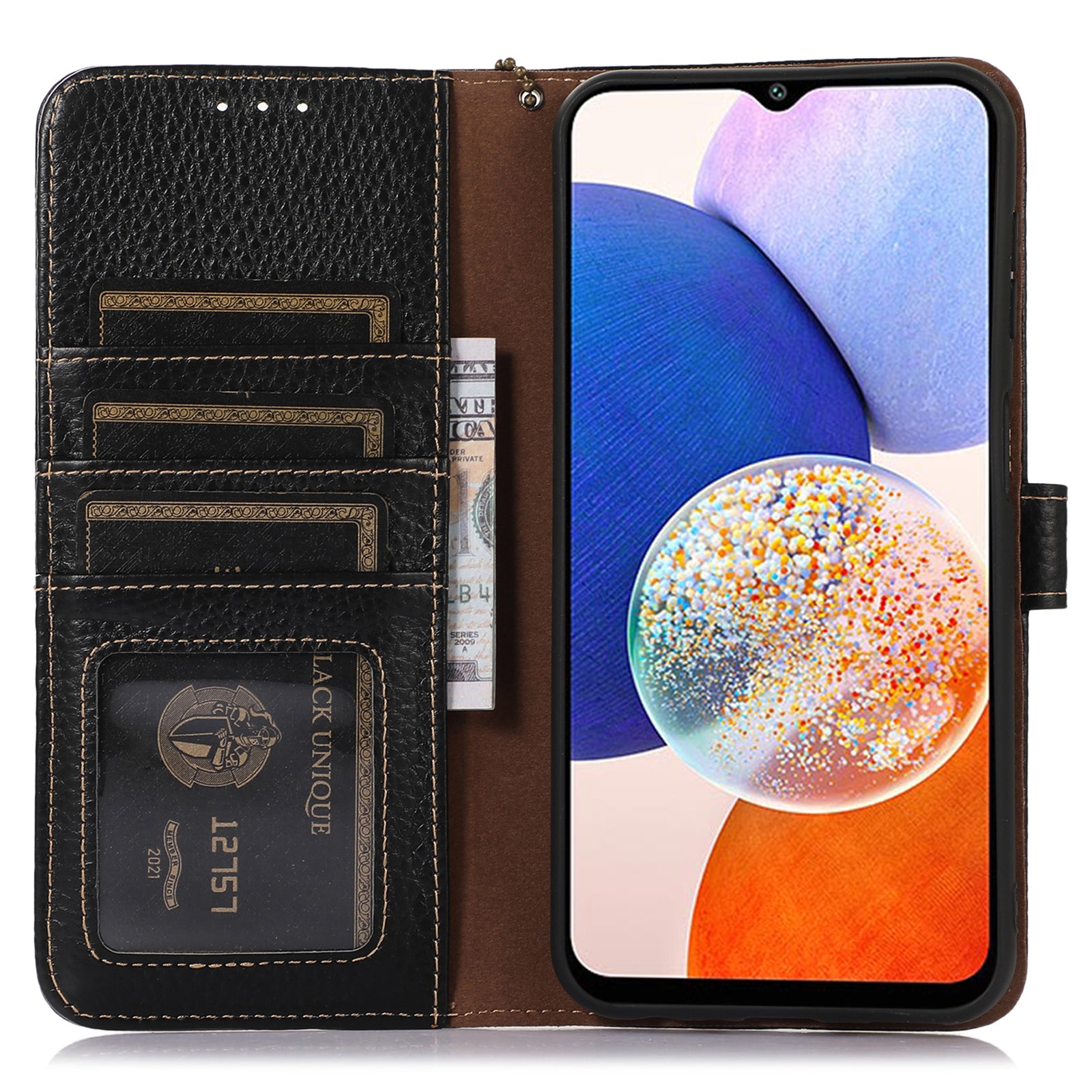 - Magnetická spona udrží váš telefon, karty a hotovost v bezpečí uvnitř