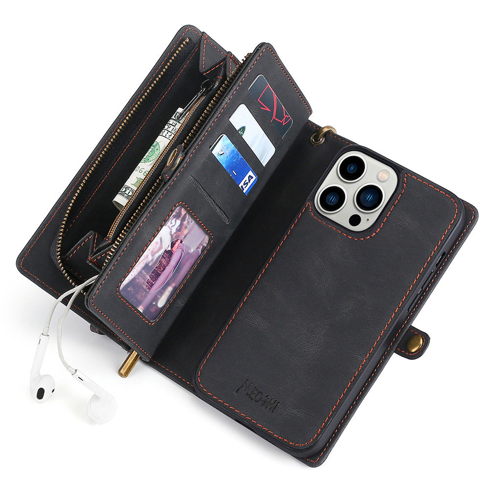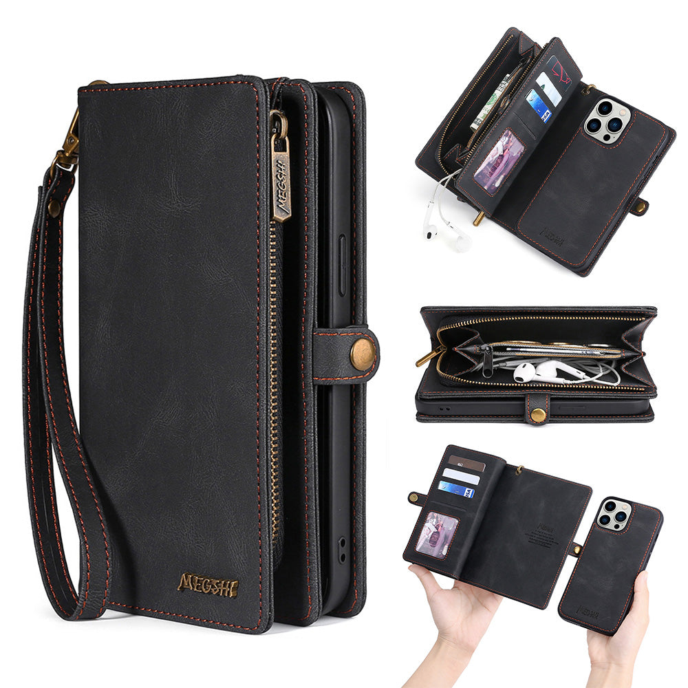 - Kožené pouzdro na peněženku MEGSHI 017 Series pro iPhone 14 Pro odnímatelný magnetický kryt s páskem na zápěstí na zip Kožené pouzdro na peněženku MEGSHI 017 Series pro iPhone 14 Pro odnímatelný magnetický kryt s páskem na zápěstí na zip