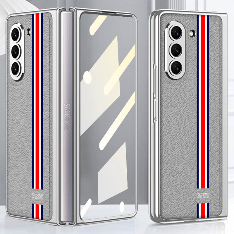 GKK pro Samsung Galaxy Z Fold5 5G galvanický kryt PU kožené PC kovové pouzdro na telefon s fólií z tvrzeného skla