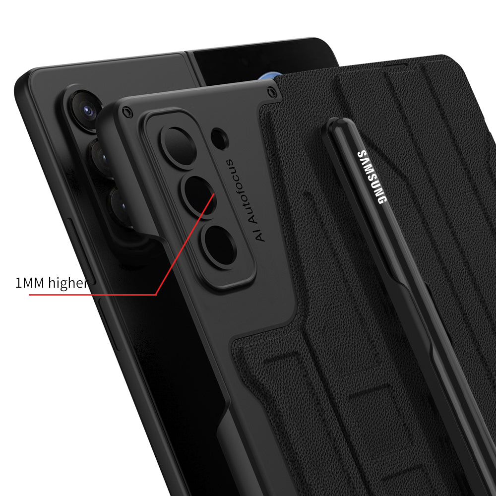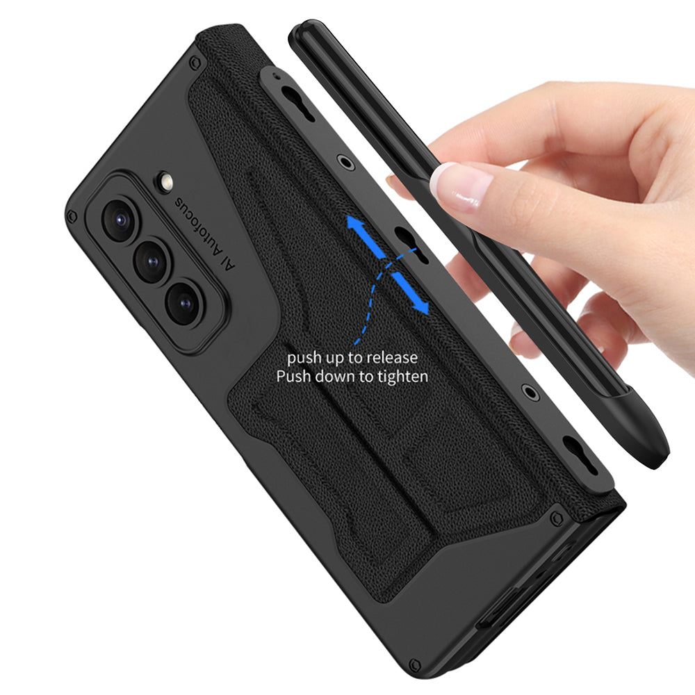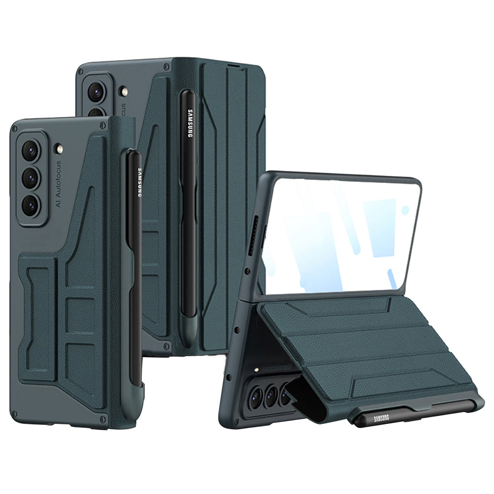 GKK pro Samsung Galaxy Z Fold5 5G pouzdro na telefon PU kožený kryt PC stojanu se slotem pro pero a fólií z tvrzeného skla