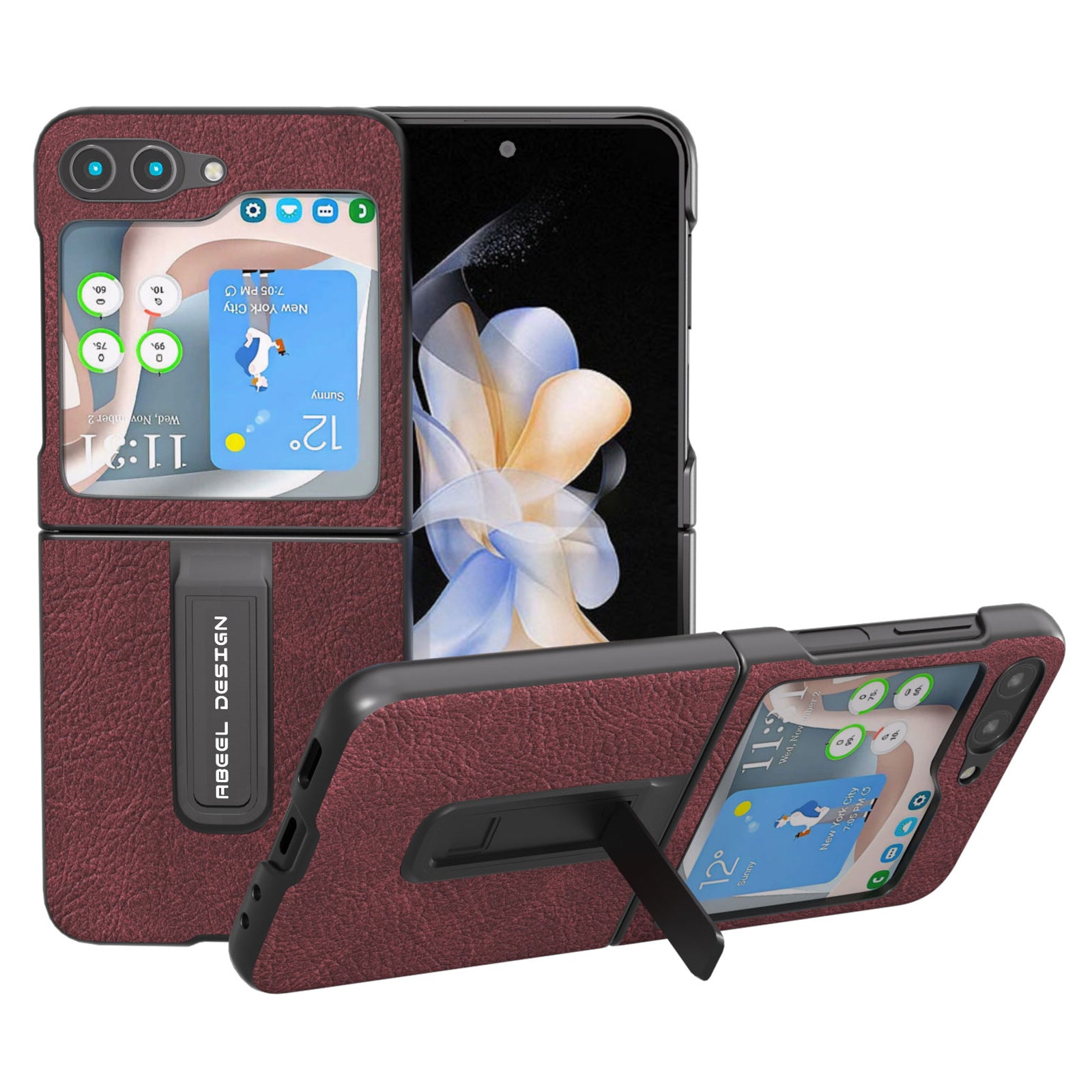 ABEEL For Samsung Galaxy Z Flip5 5G Kickstand Zadní kryt Litchi Texture Leather Coated PC Phone Case