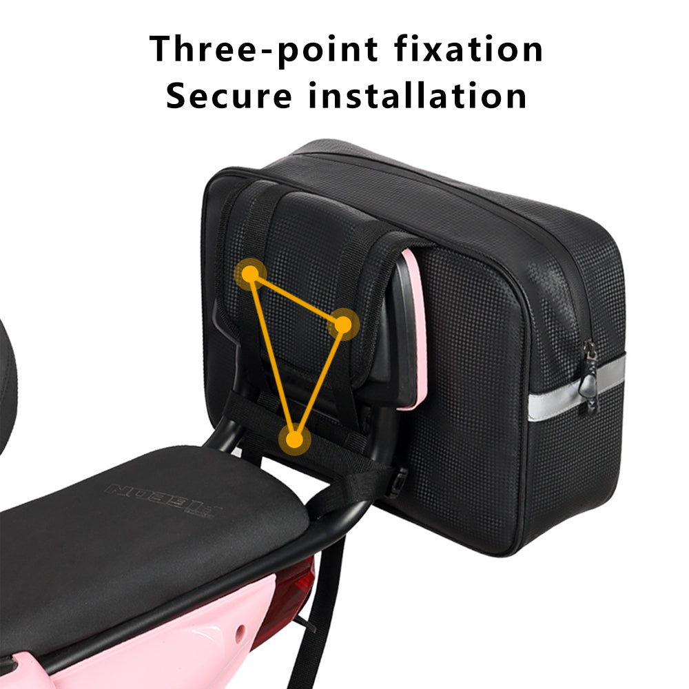 - Perfect for electric bicycles with backrests, this waterproof rear bag offers ample space to store your essentials securely during your cycling adventures
