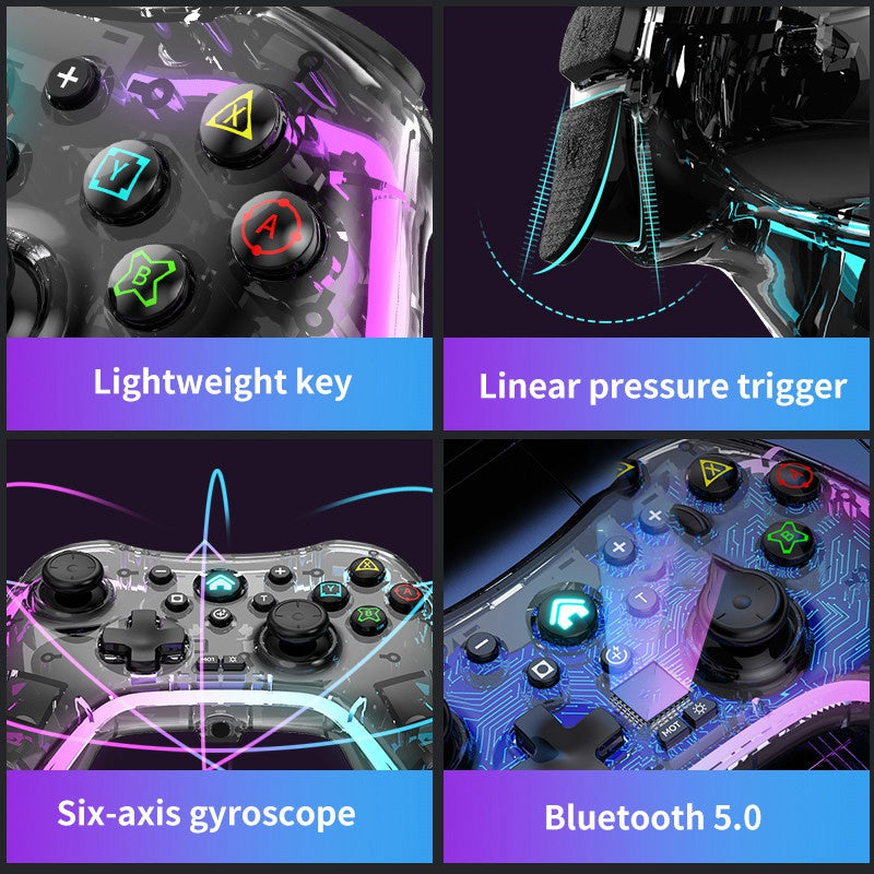 - S03 Pro Nintendo Switch RGB Bluetooth herní ovladač Transparentní černá konzole gamepadu S03 Pro Nintendo Switch RGB Bluetooth herní ovladač Transparentní černá konzole gamepadu