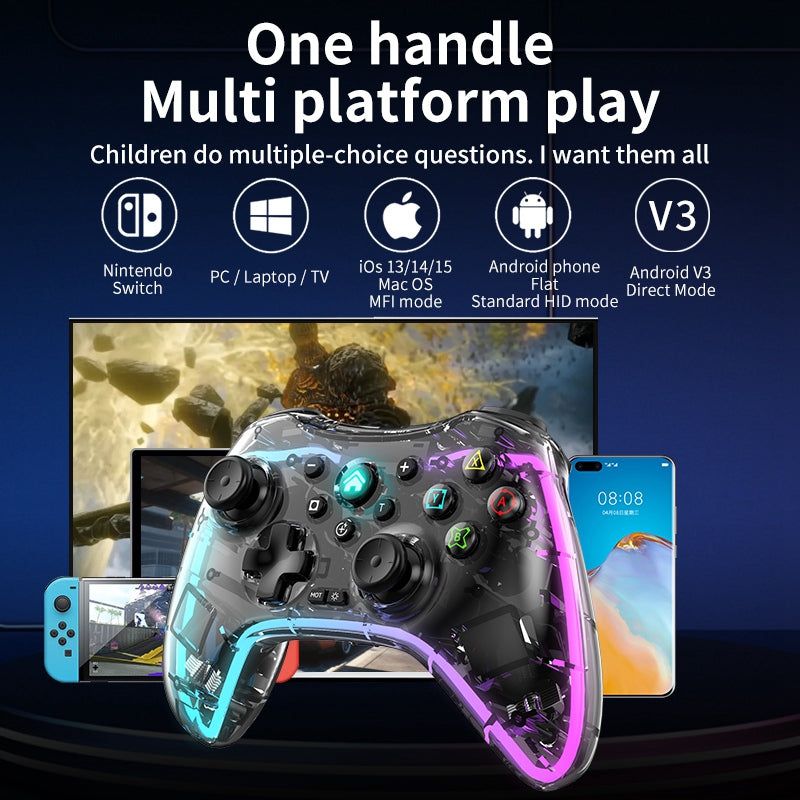 - Bluetooth+kabelové+2.4G připojení, kompatibilní s Nintendo switch, notebook, TV, iOS 13/14/15, režim MFi, telefon Android, standardní režim HID, režim přímého připojení Android V3 atd.