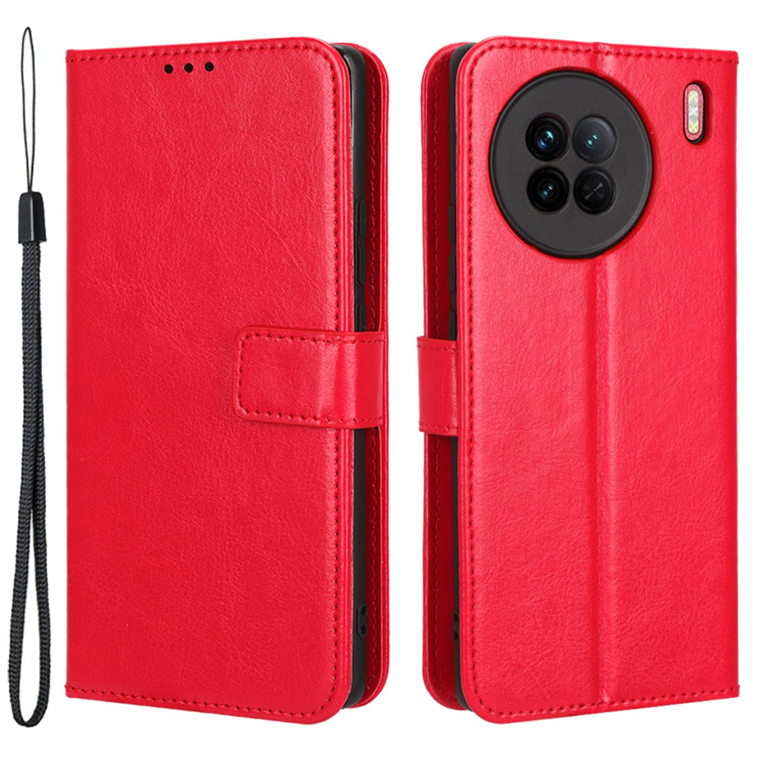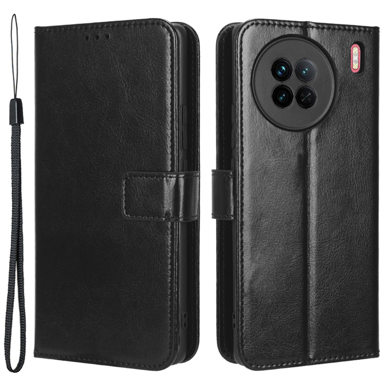 Crazy Horse Texture Wallet Stand Case for vivo X90 5G PU Leather Flip Phone Cover with Strap