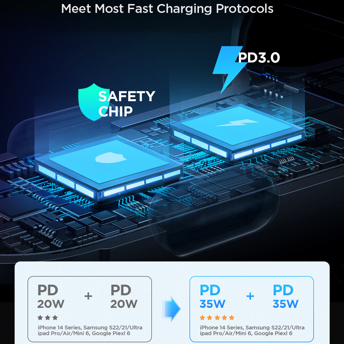 - Dual PD Car Charger can charge 2 devices simultaneously