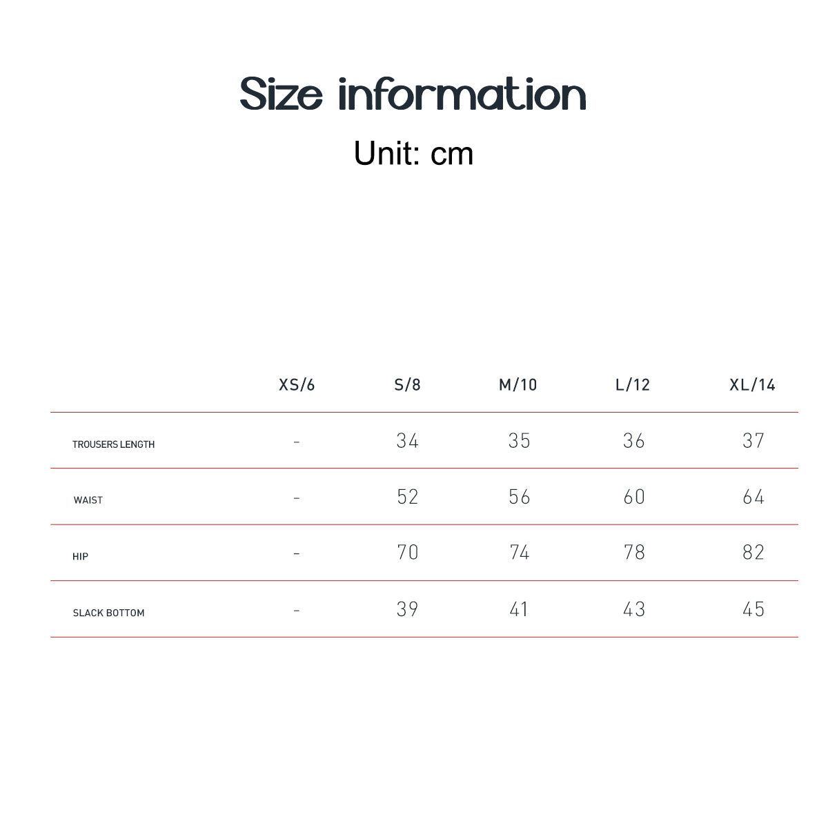 Size | Length (cm) | Waist Circumference (cm) | Hip Circumference (cm) | Leg Hem Size (cm) |