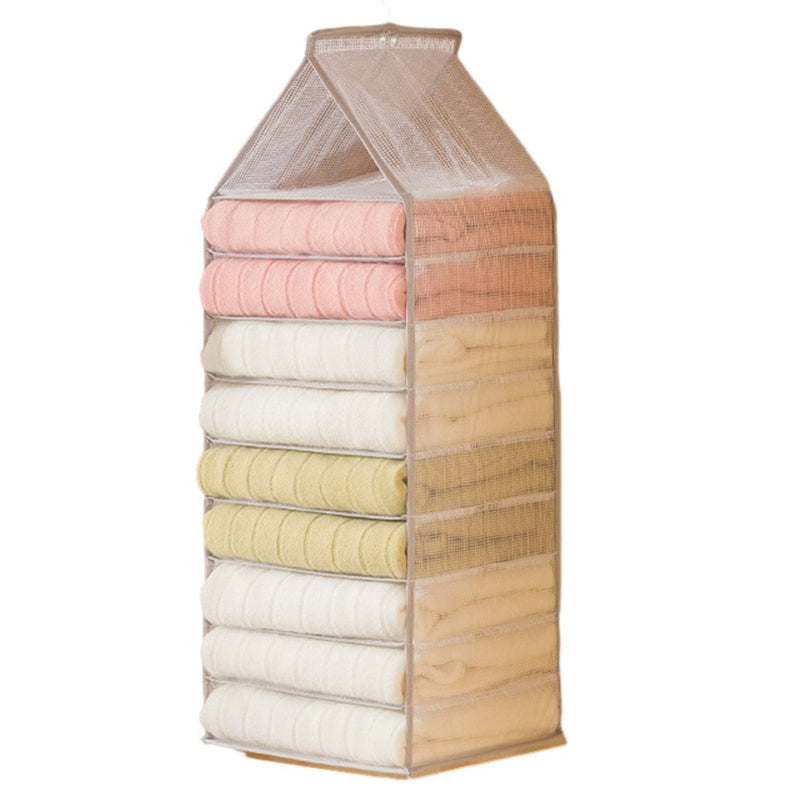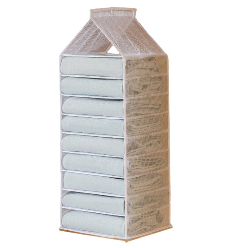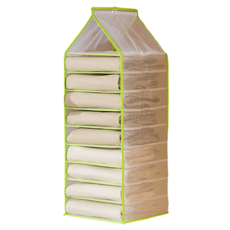 - This hanging storage bag features 9 shelves, offering layered organization to maximize space efficiency in your closet