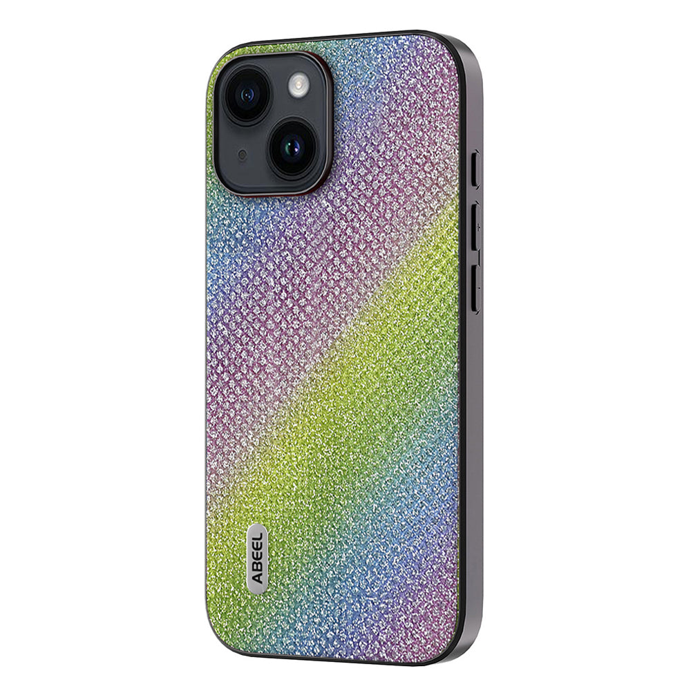 ABEEL pro iPhone 15 Třpytivý kryt s drahokamu texturou PU kůže PC TPU pouzdro na telefon odolné proti nárazům