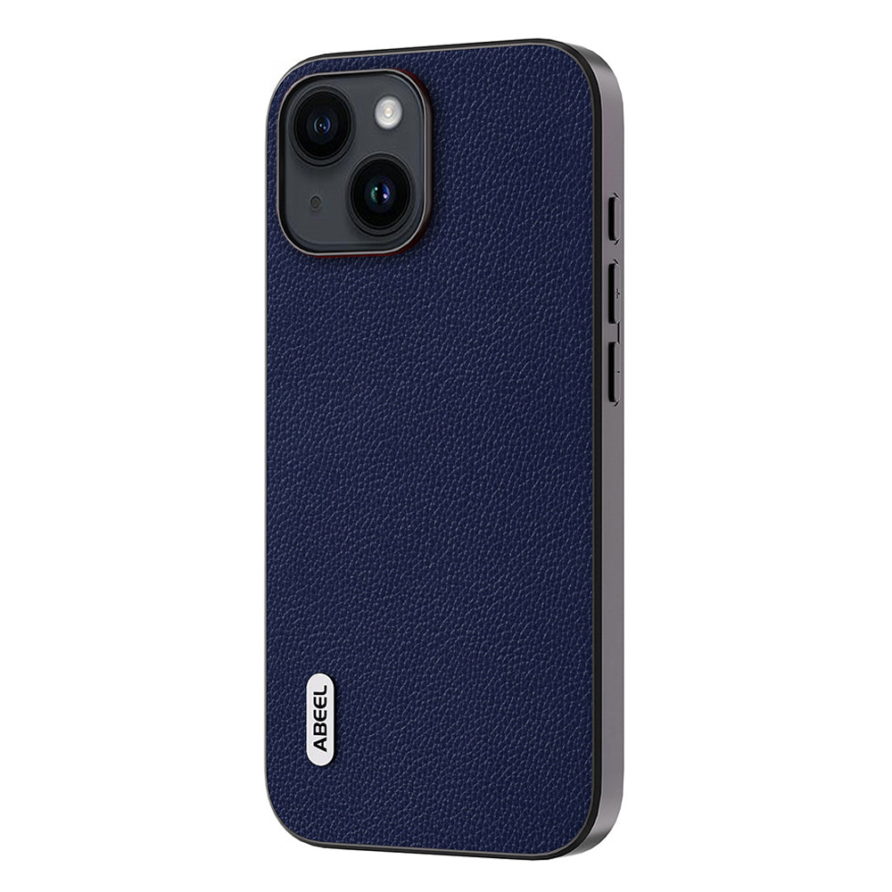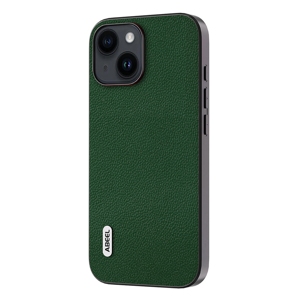 Pouzdro na mobil ABEEL pro iPhone 15 Flexibilní pouzdro na mobil z pravé hovězí kůže s texturou TPU