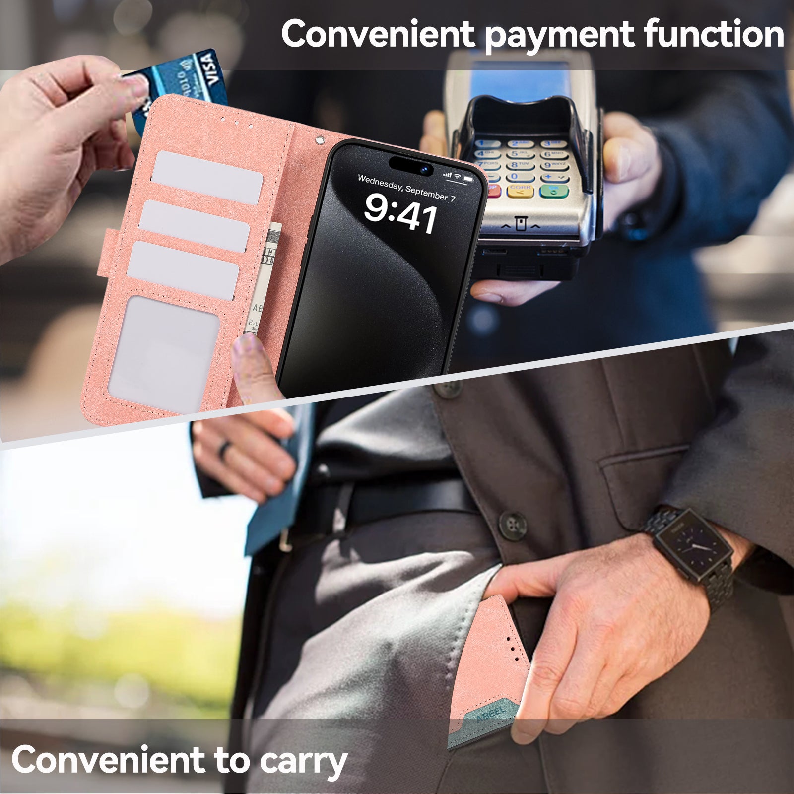 ABEEL For iPhone 15 Pro Max PU Leather Cover RFID Blocking Stand Phone Protective Case