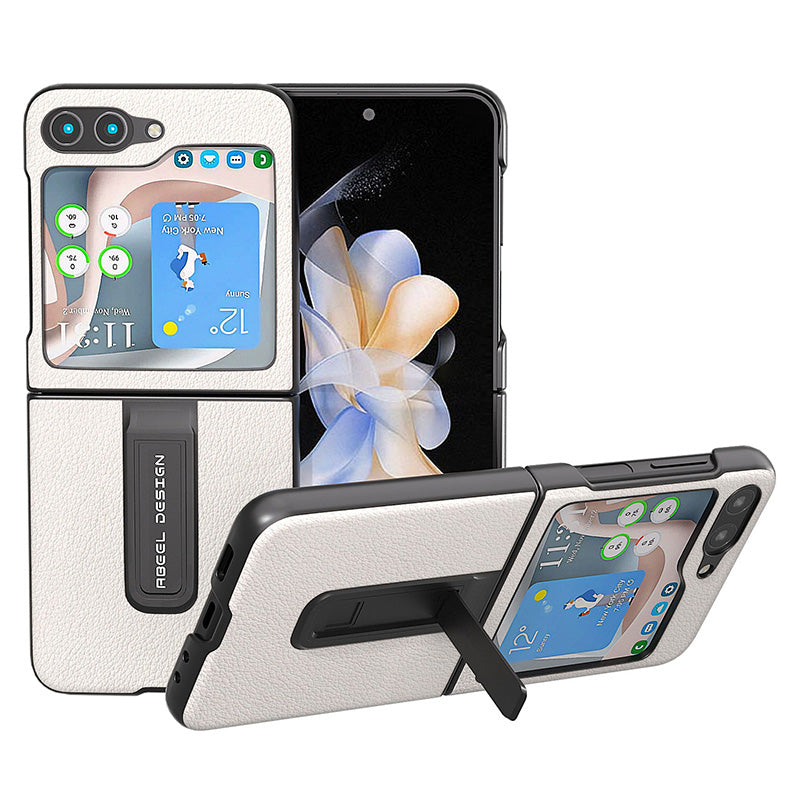 ABEEL For Samsung Galaxy Z Flip5 5G Kickstand Pouzdro na telefon z pravé hovězí kůže PC s texturou