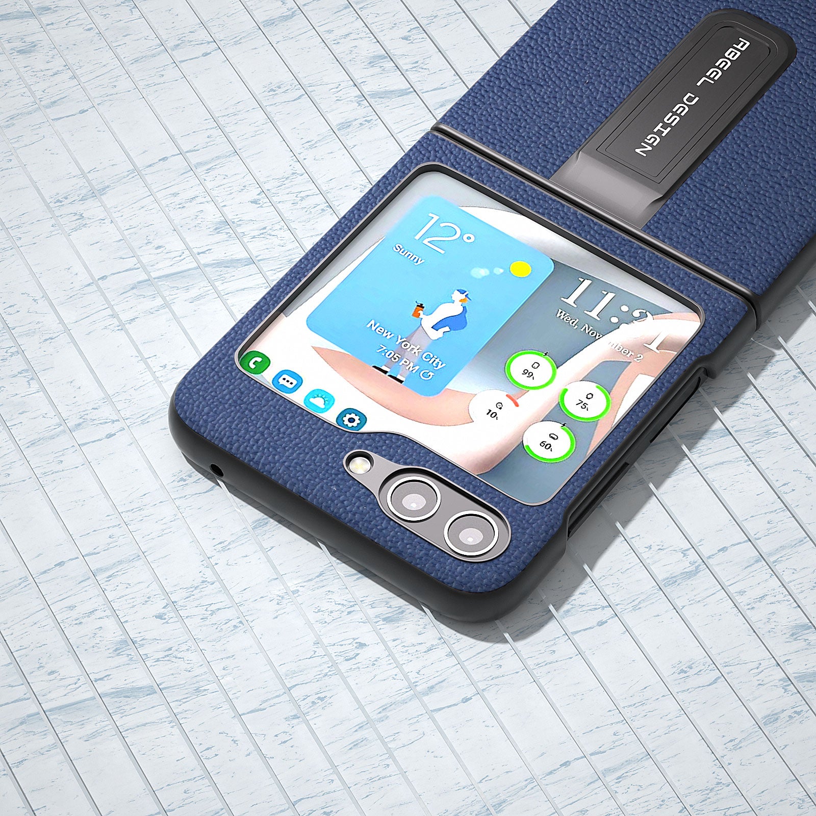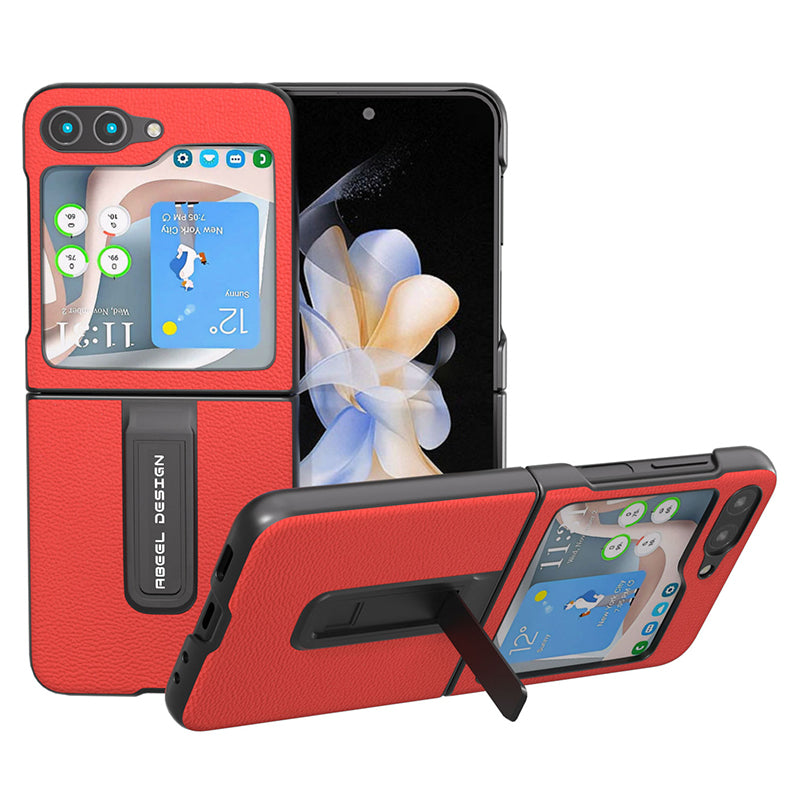 ABEEL pro Samsung Galaxy Z Flip5 5G Litchi Texture Zadní kryt Stojánek Originální Pouzdro na PC z hovězí kůže