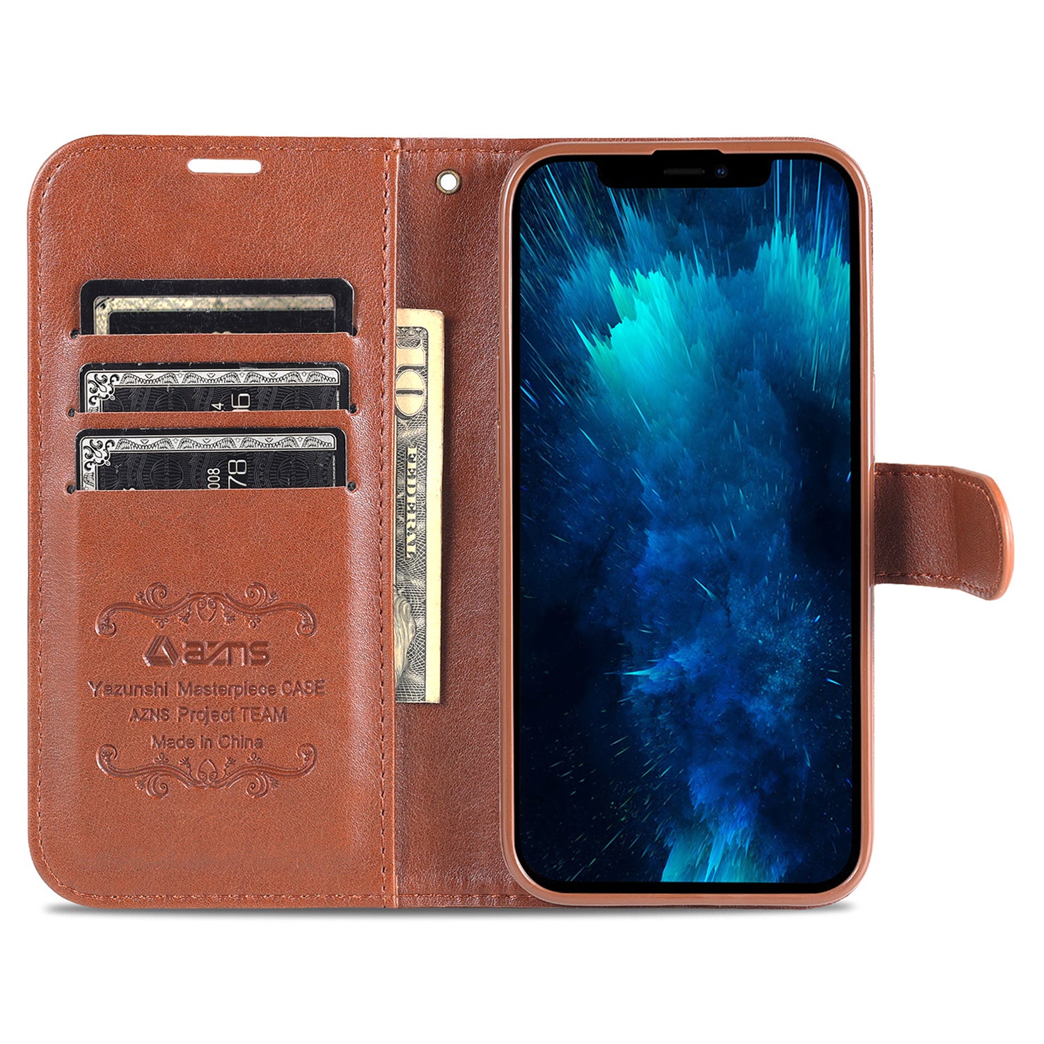 AZNS PU kožené pouzdro pro iPhone 15 Pro Max Stand Peněženka odolný proti pádu