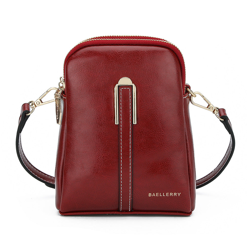 BAELLERRY N8923 Waxy PU Leather Women Dual Layer Vertical Mini Crossbody Bag