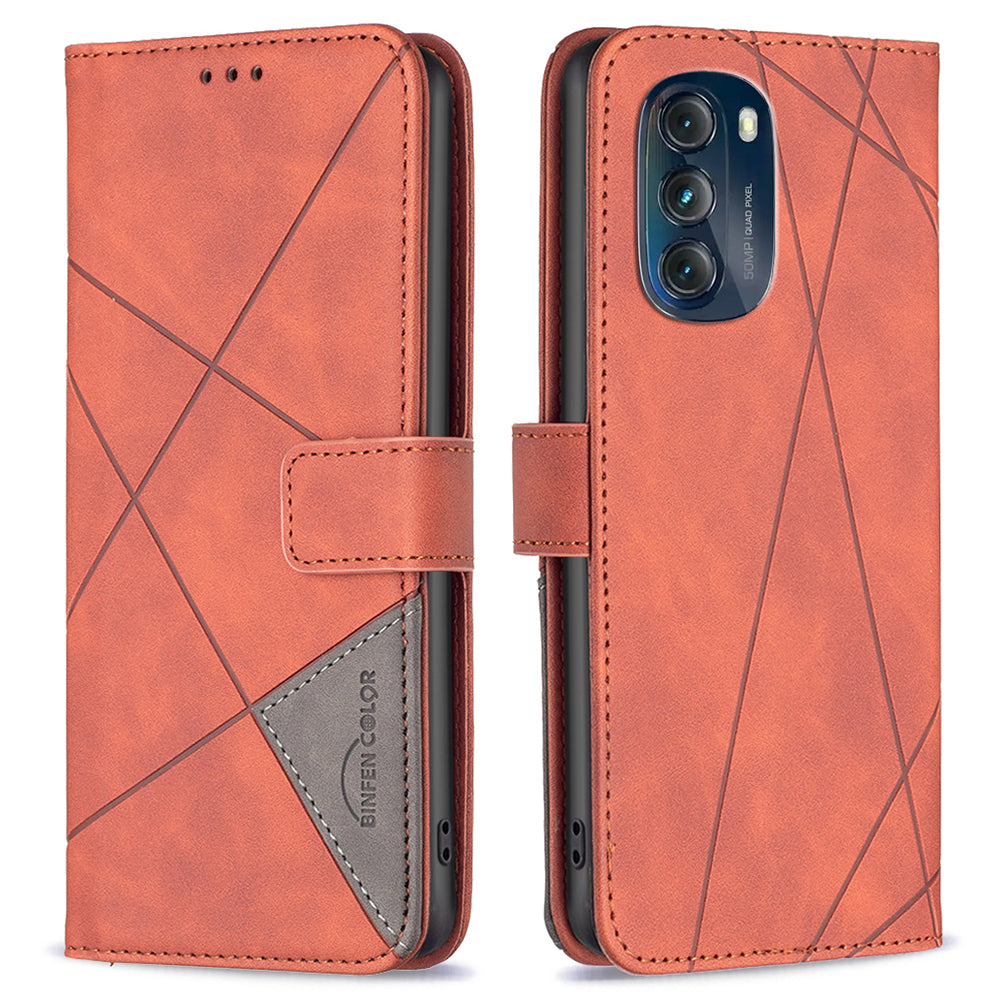 BINFEN COLOR Anti-shock Phone Cover Peněženka pro Motorola Moto G 5G (2023) BF Potištěný vzor Series-2 Style 05 Kožené pouzdro Stojan
