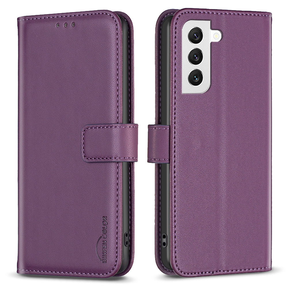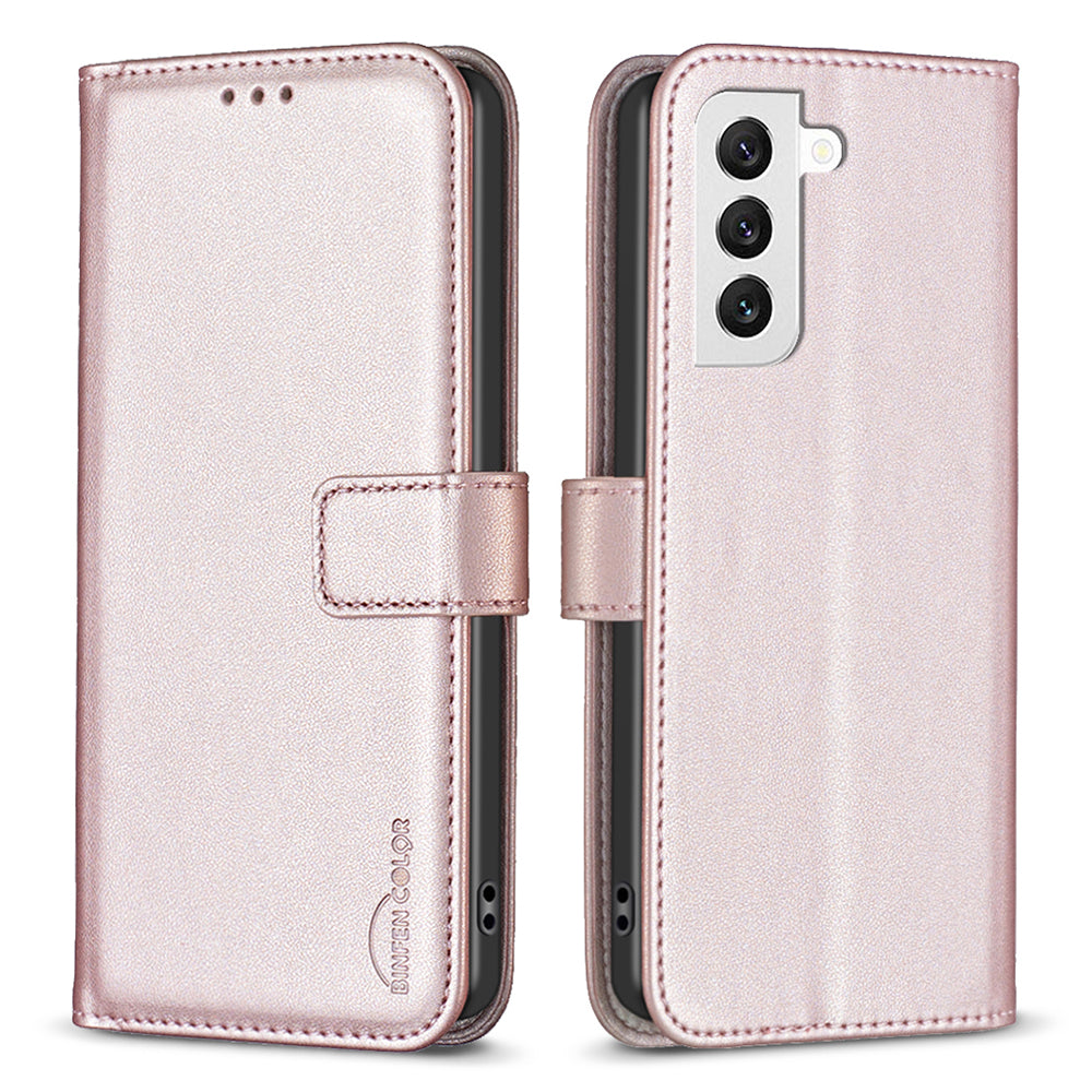 BINFEN COLOR BF17 stojánek kryt na telefon pro Samsung Galaxy S22 5G peněženka PU kožené pouzdro na mobil