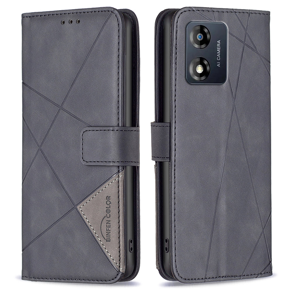 BINFEN COLOR kryt na mobil pro Motorola Moto E13 4G BF s potiskem vzoru Series-2 Style 05 kožené pouzdro na telefon proti pádu na peněženku