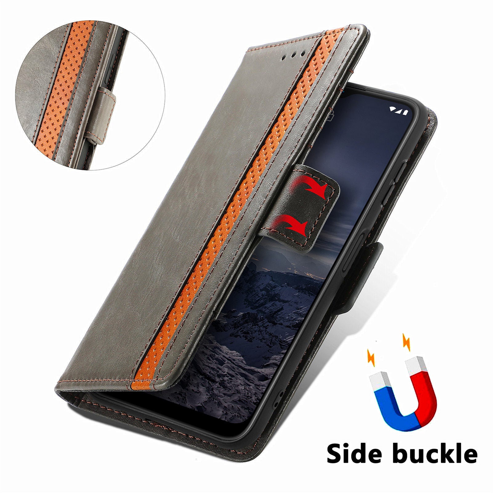 Řada CASENEO 002 pro Nokia G21 4G G11 4G s blokováním RFID pro podnikání ve stylu spojování Pouzdro na telefon Flip Kožený stojánek na peněženku Nárazuvzdorný kryt telefonu