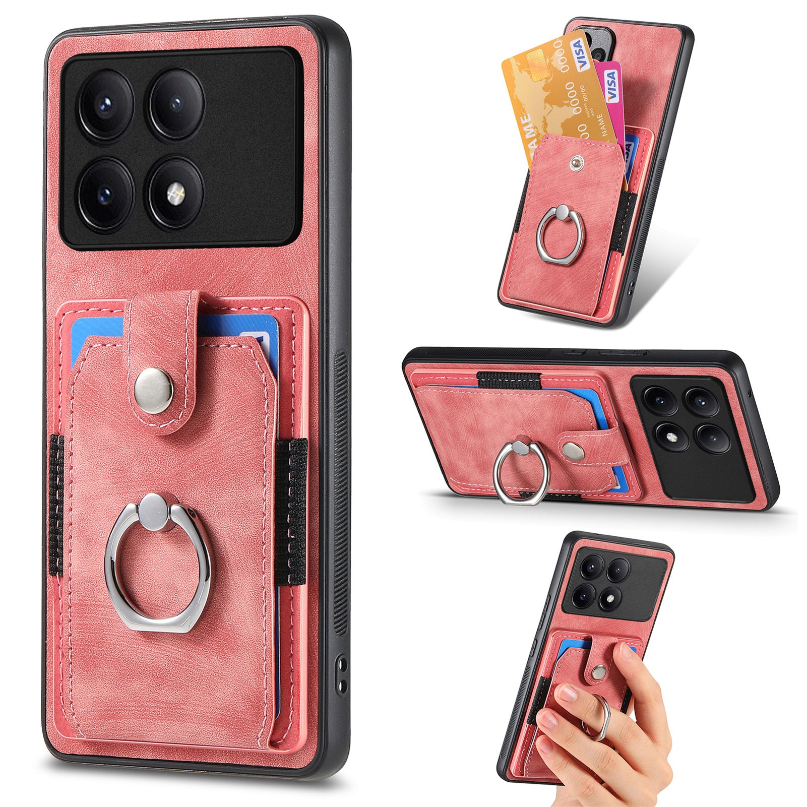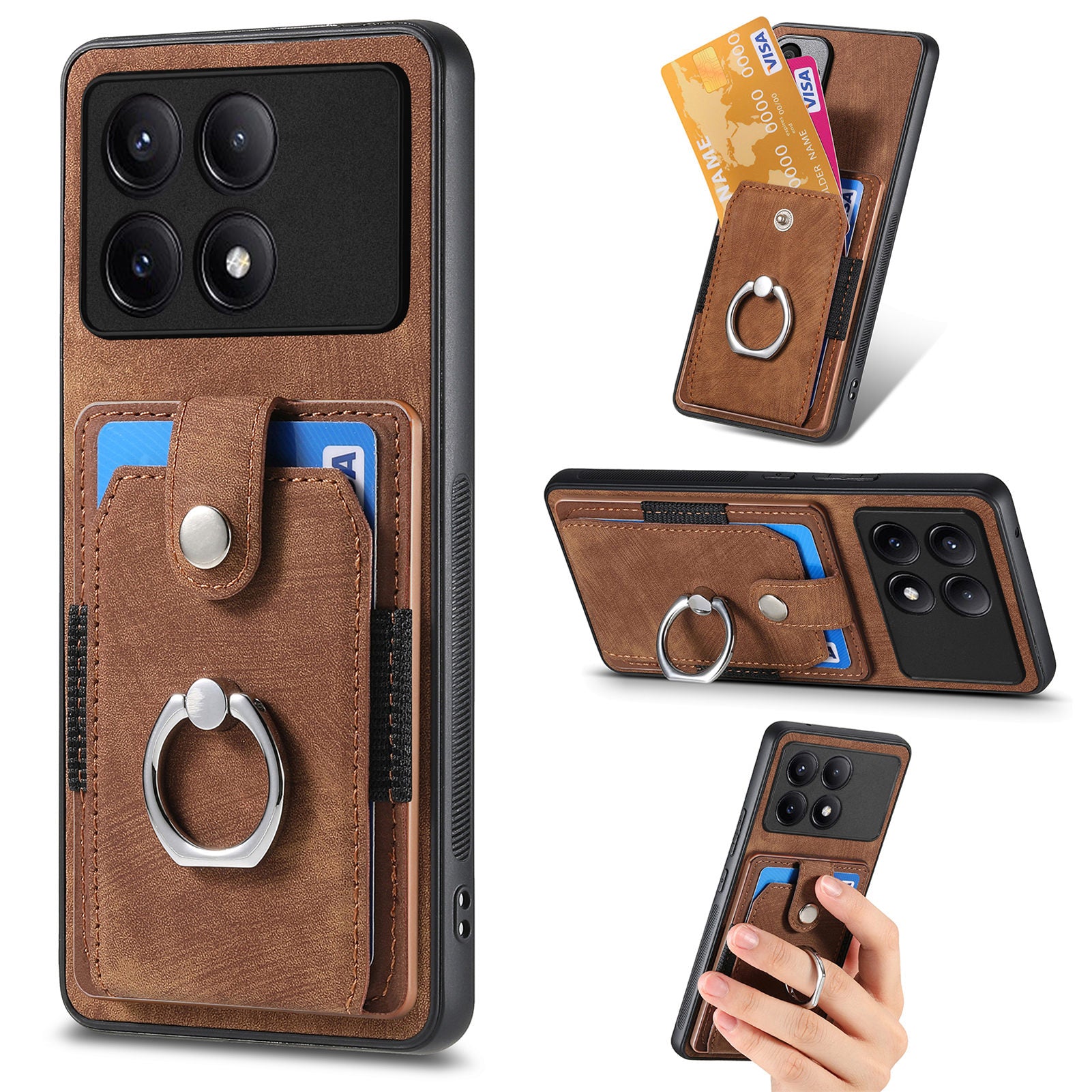 D2 For Xiaomi Redmi K70E 5G / Poco X6 Pro 5G Ring Holder Phone Case PU Leather+TPU Card Holder Phone Cover