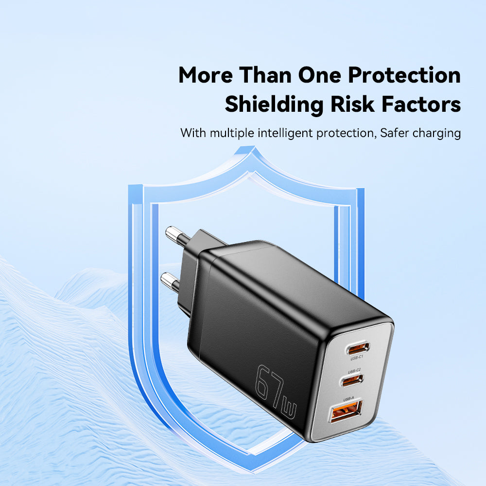 ESSAGER 67W High Power GaN Travel Adapter USB-A + 2 Type-C Portable Wall Charger
