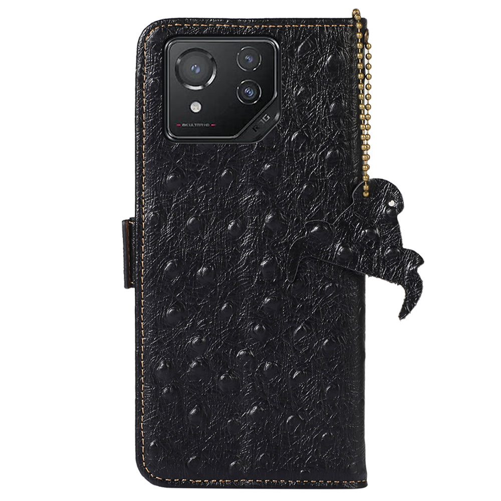 For Asus ROG Phone 8 5G / Phone 8 Pro 5G Ostrich Texture Wallet Case Genuine Cow Leather Phone Cover - Black