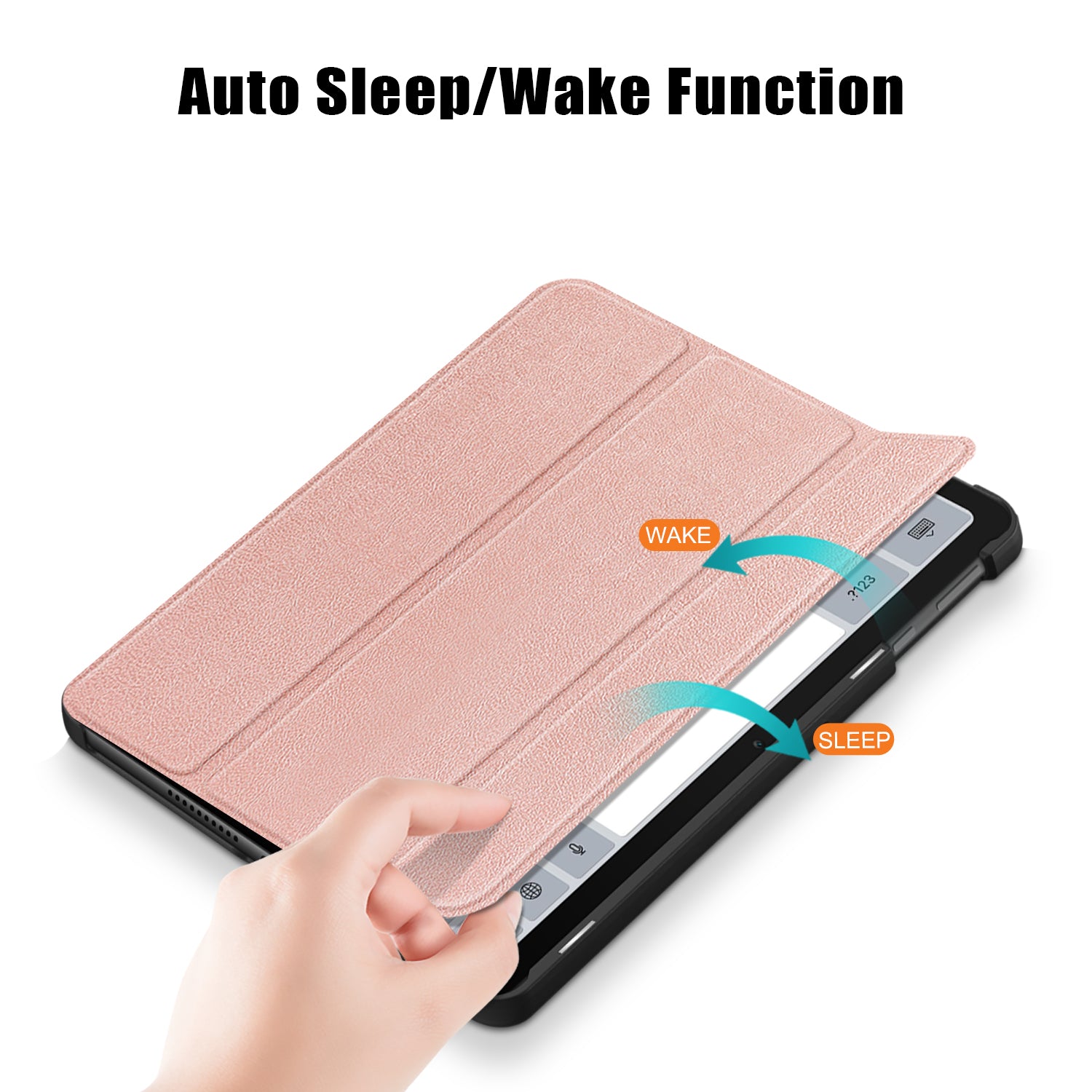 This tablet case adopts high-quality PU leather +PC with fine details, making it feel soft and delicate to touch. The tri-fold cover with dual angles supporting offers a sturdy and versatile stand for viewing and typing.